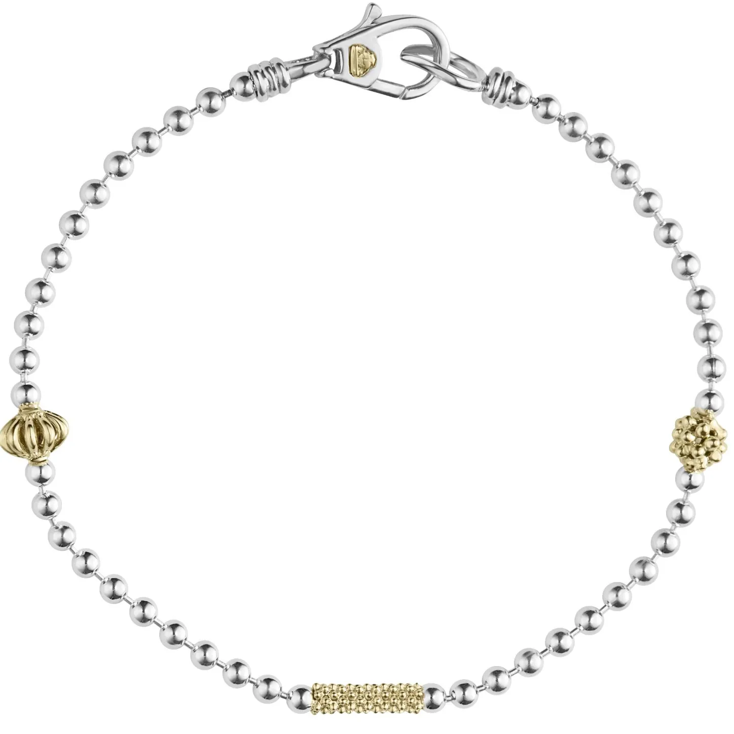 - One Sterling Silver Bracelet With 18K Gold Caviar Beading And Fluted Accents. Size Medium Measures 7.5 Inches In Length.