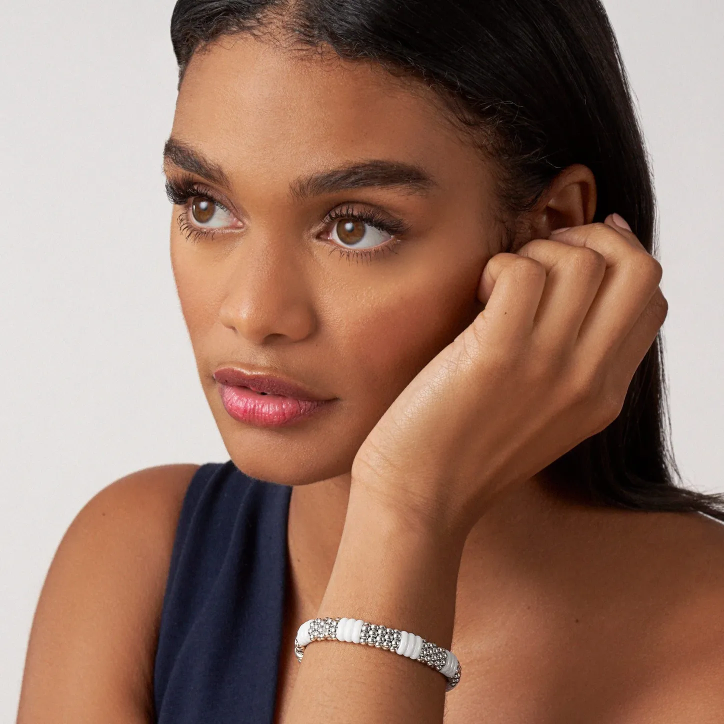 Caviar Beading In Sterling Silver And Smooth White Ceramic Form This Signature Bracelet.