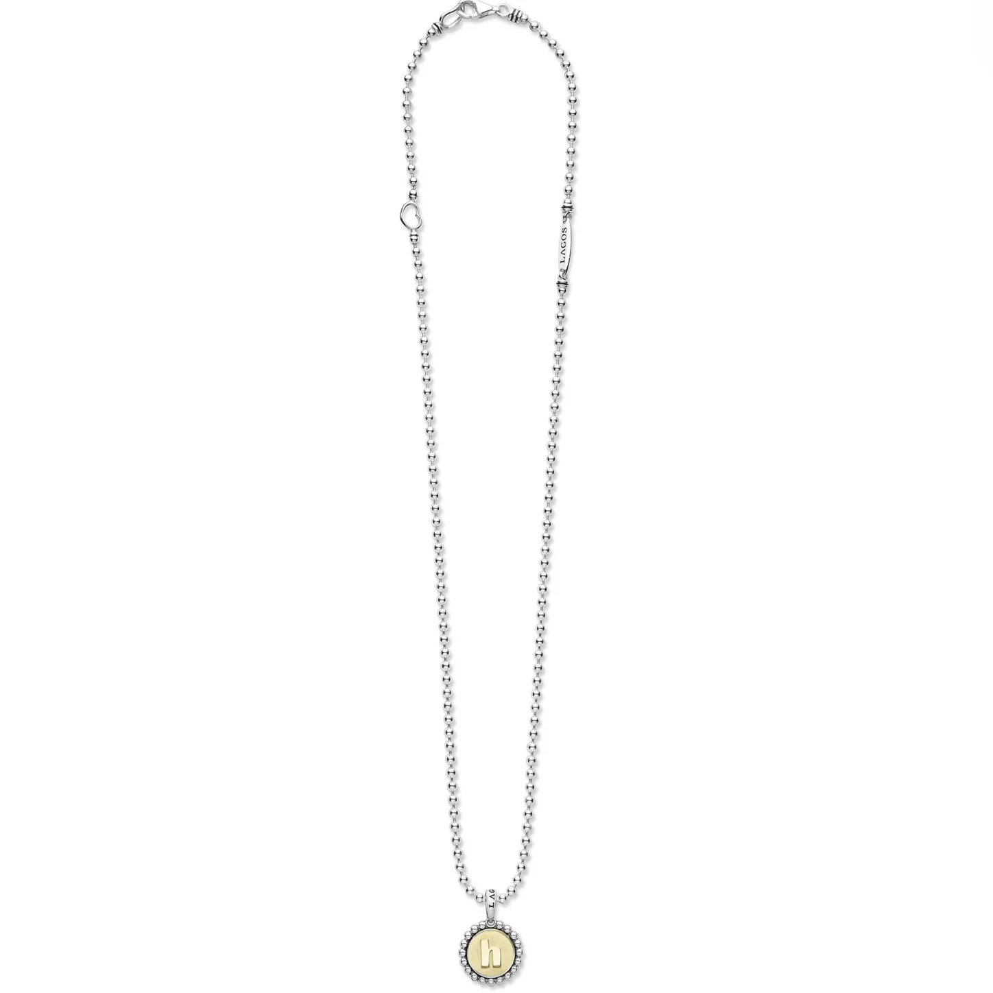 Our Signature Caviar Sterling Silver And 18K Gold Initial ‘H’ Charm Finished On A Sterling Silver Ball Chain Necklace.