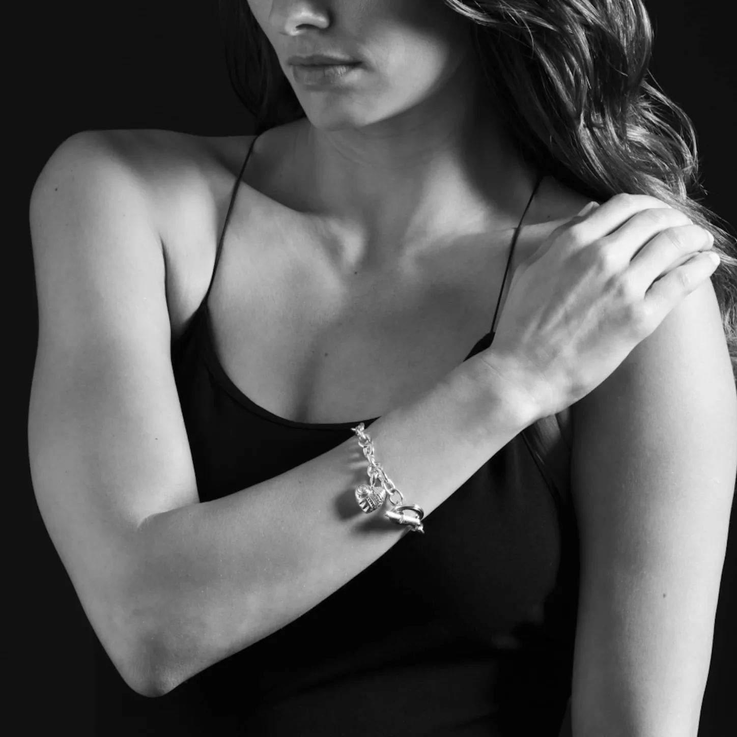 An Intricately Designed Sterling Silver Heart With Iconic Landmarks From Philadelphia On A Sterling Silver Toggle Bracelet.