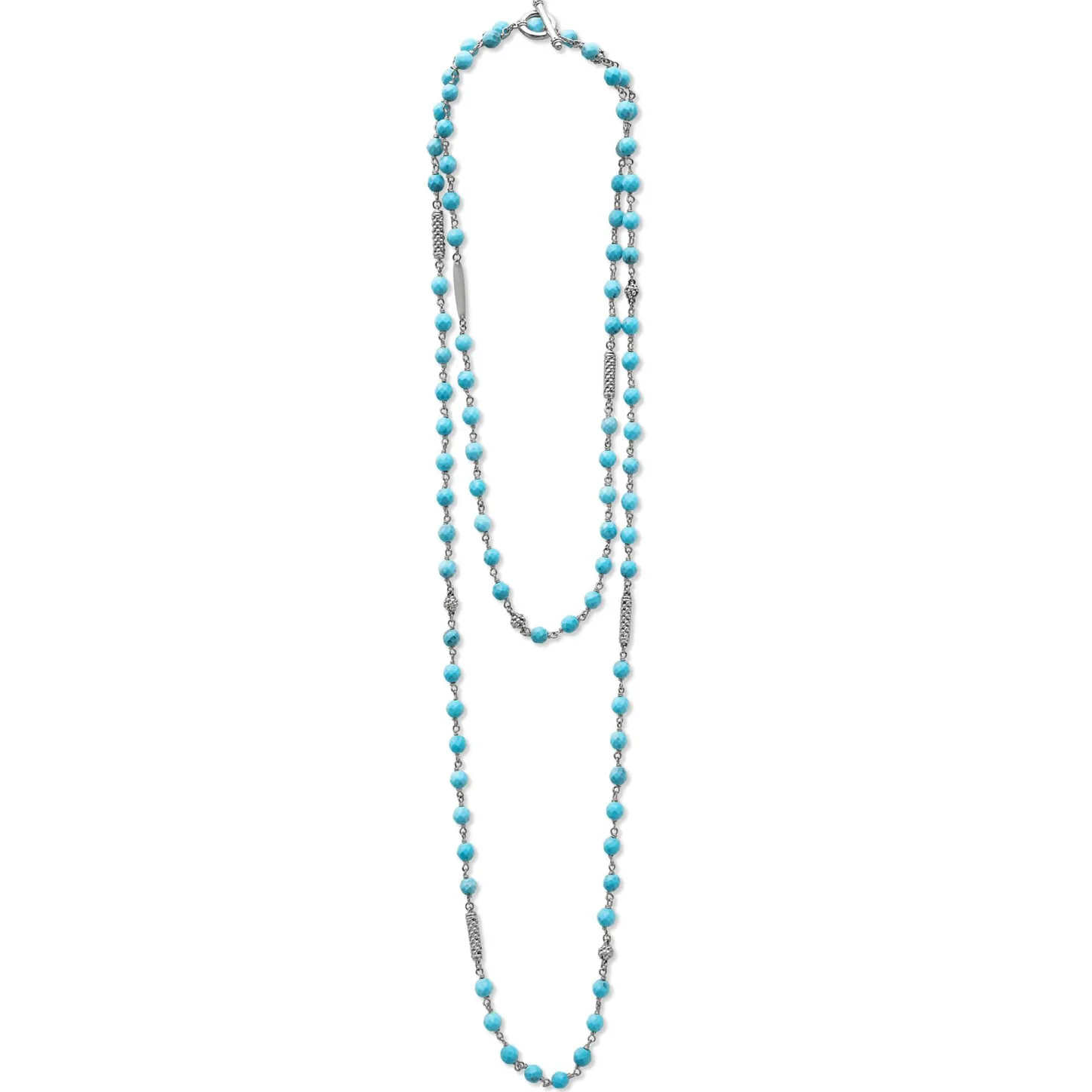 Turquoise And Sterling Silver Caviar Beaded Necklace Finished With Signature Lobster Clasp.