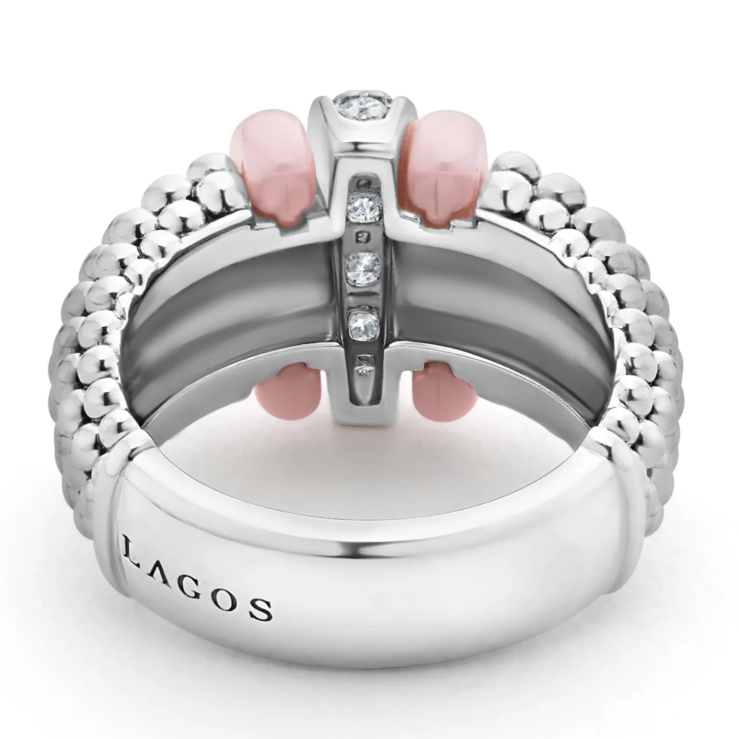 Diamonds Set In Sterling Silver Are Accented By A Pop Of Pink Ceramic And Caviar Beading On This Ring. Lagos Diamonds Are The Highest Quality Natural Stones.