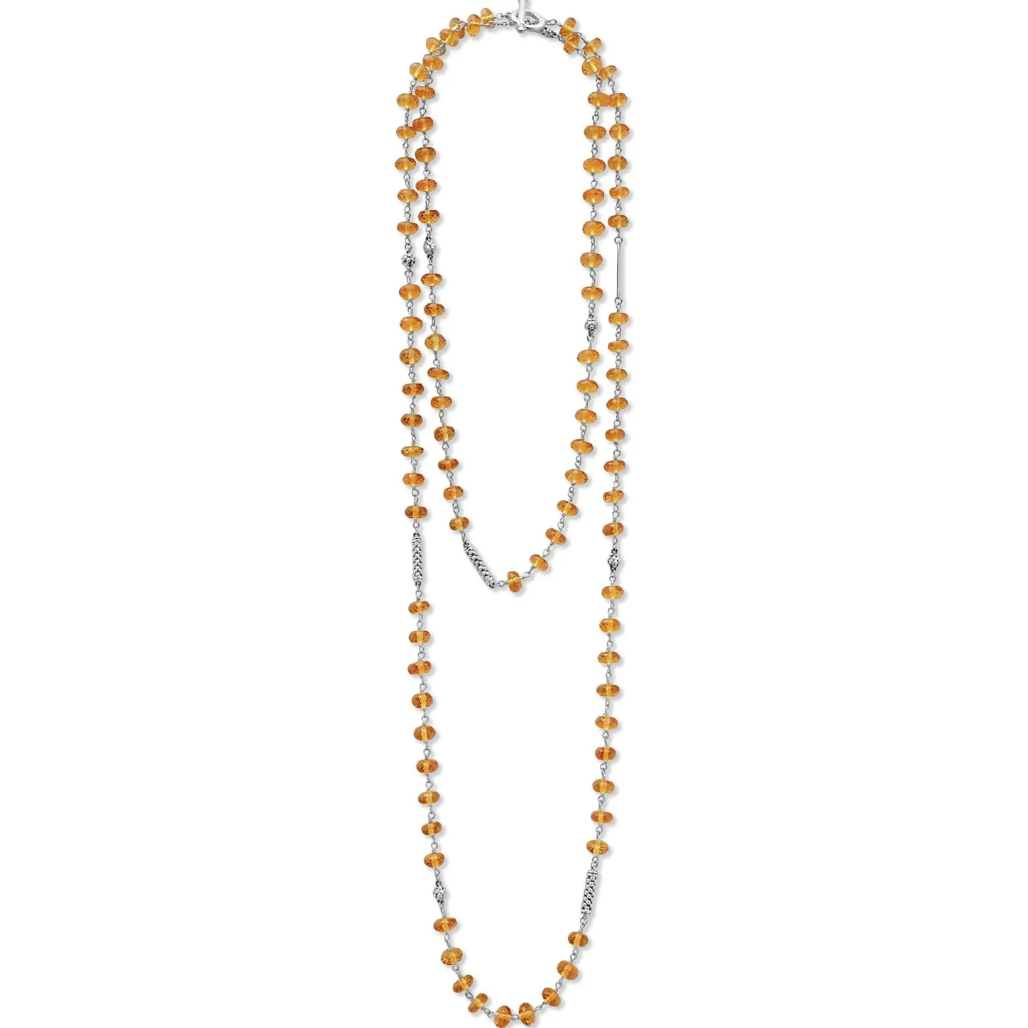 Citrine And Sterling Silver Caviar Beaded Necklace Finished With Signature Lobster Clasp.