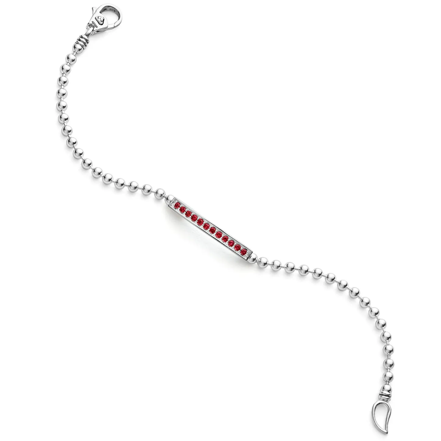 A Linear Ruby Gemstone Station Set By Sterling Silver Caviar Beading Forms This Bracelet.