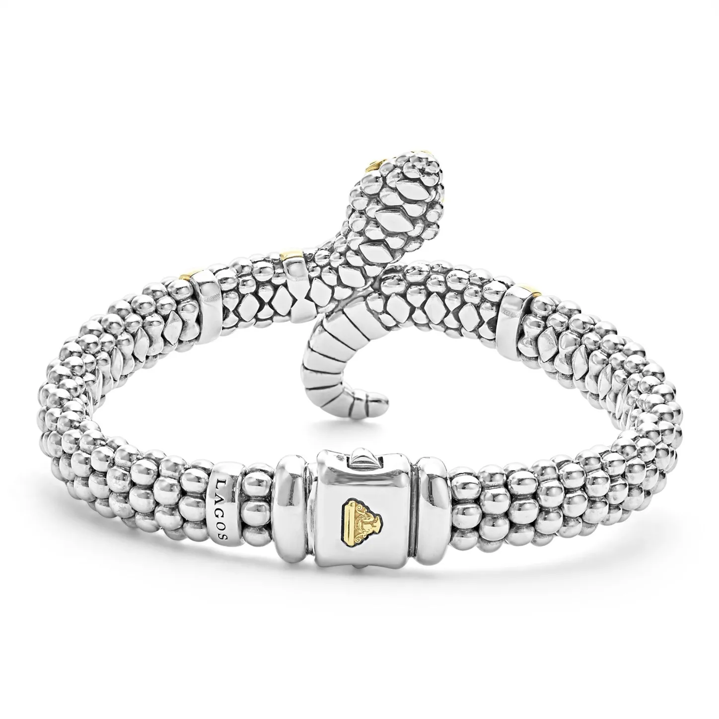 Sterling Silver Caviar Beading Highlighted By 18K Gold Form This Unique Snake Bracelet.