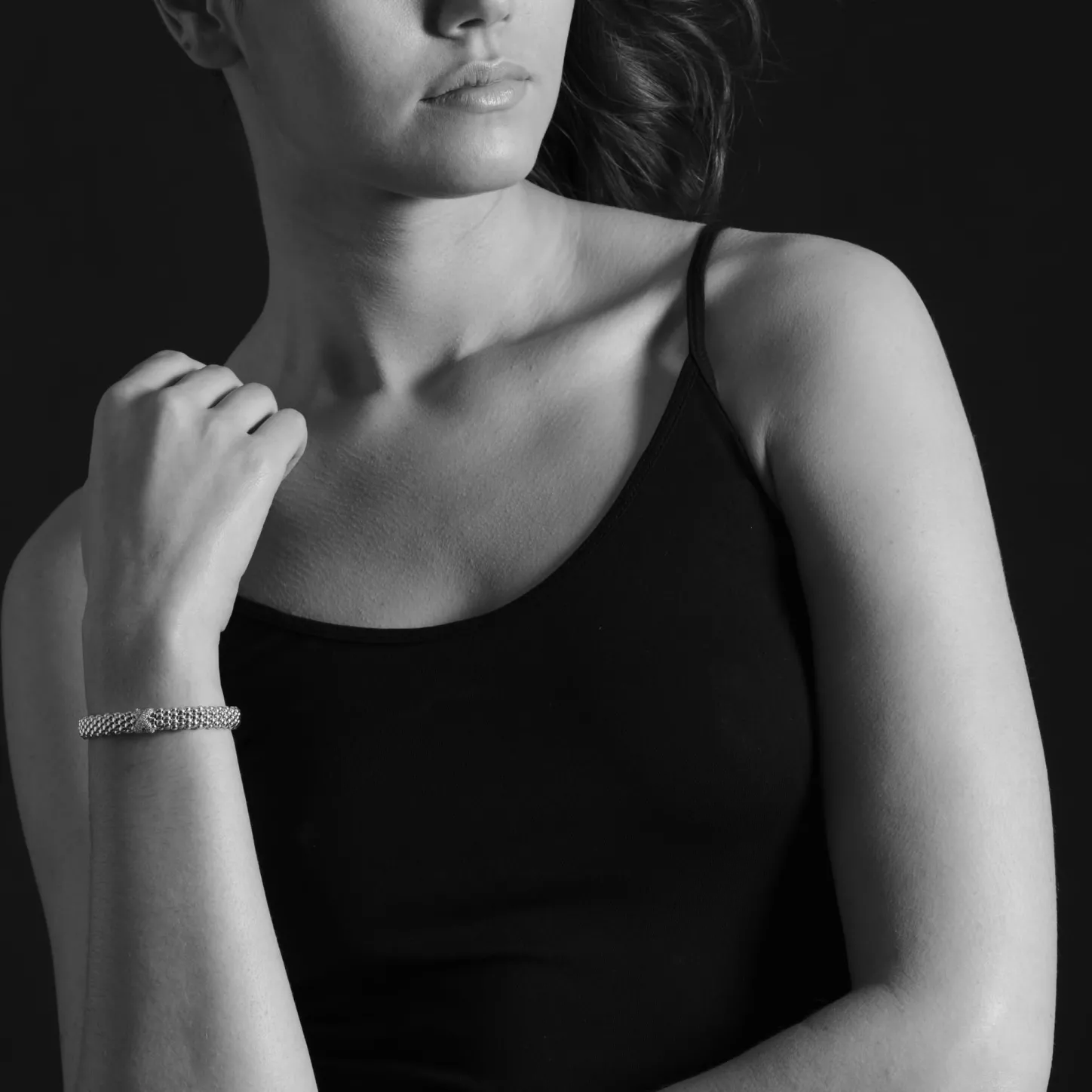 A Diamond Station Wraps This Signature Sterling Silver Caviar Beaded Bracelet. Lagos Diamonds Are The Highest Quality Natural Stones.