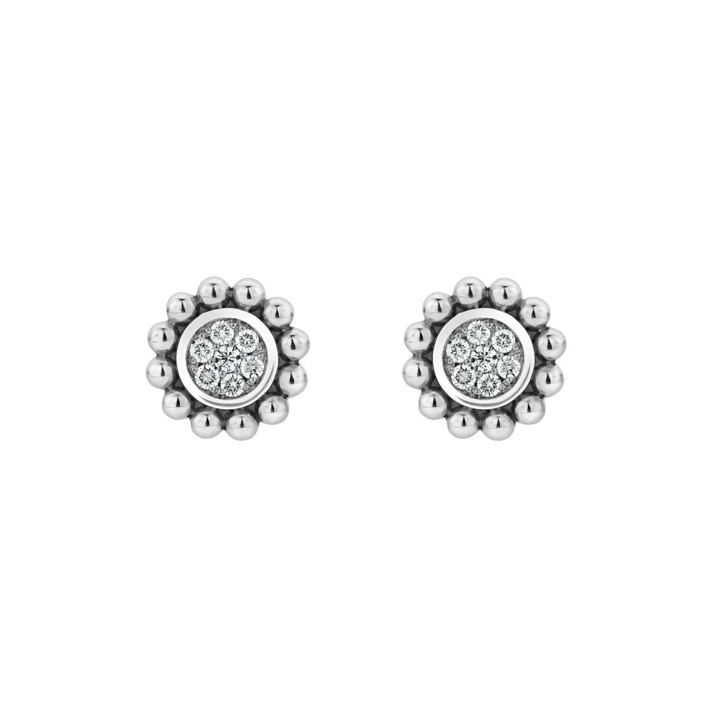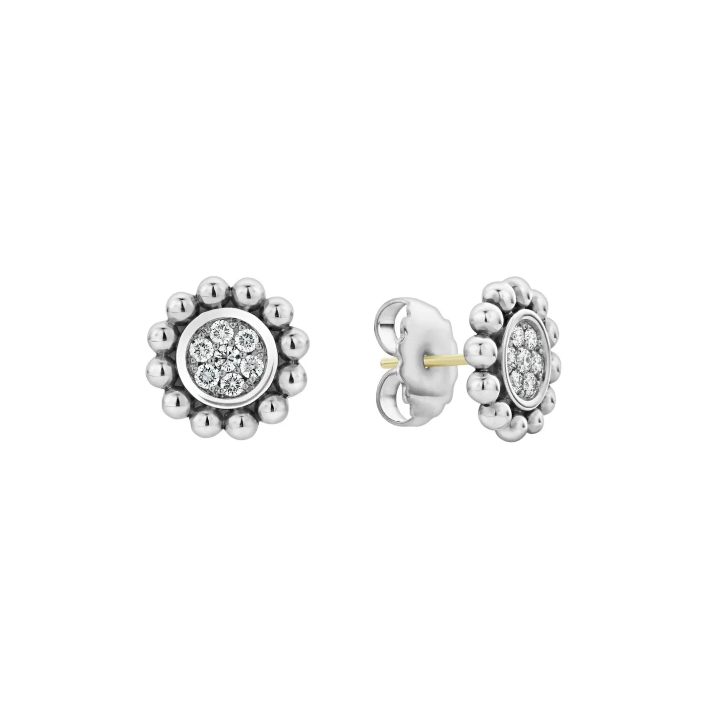 Pavé Diamond Circle Earrings Framed By Caviar Beading. Lagos Diamonds Are The Highest Quality Natural Stones.