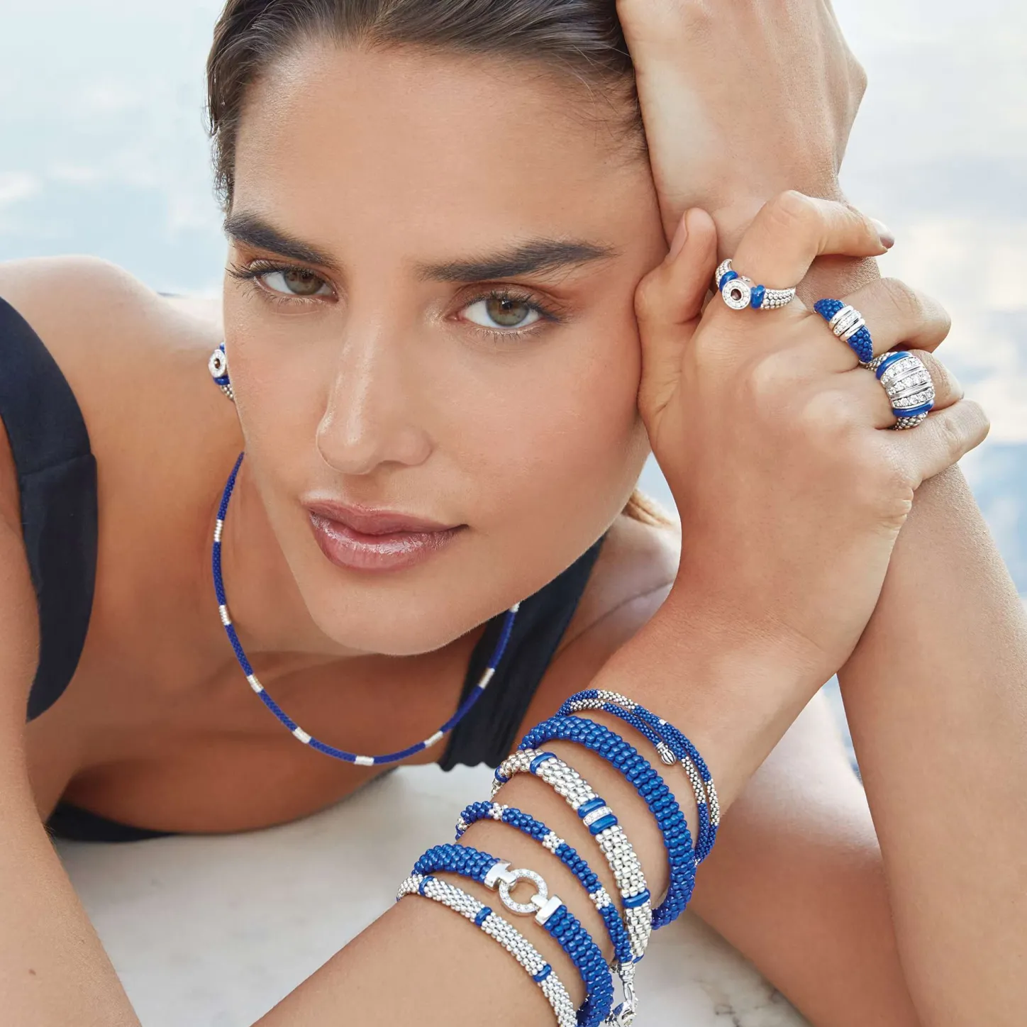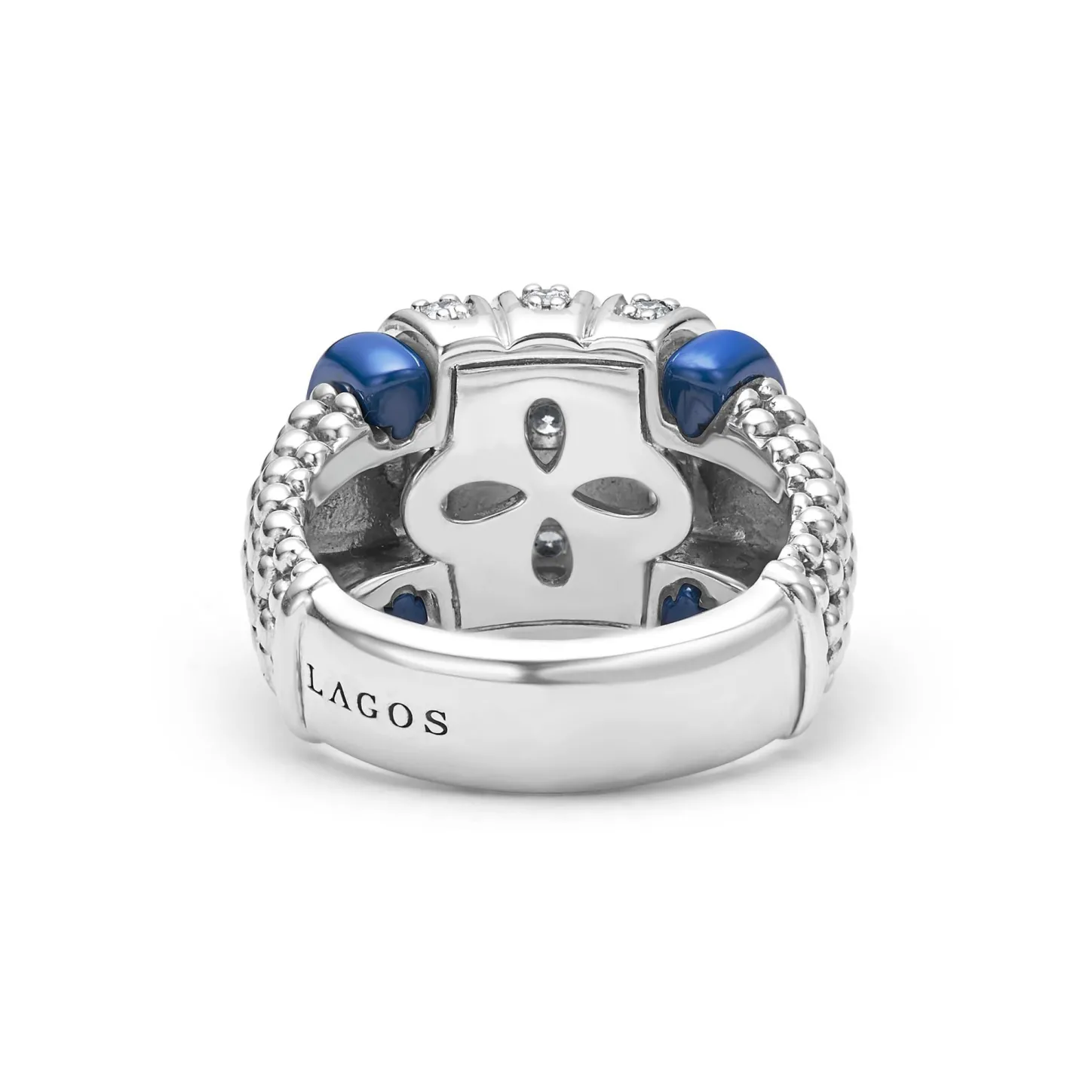 Signature Ultramarine Ceramic Highlights These Brilliant Diamonds And Caviar Beading On This Every Day Ring. Lagos Diamonds Are The Highest Quality Natural Stone.