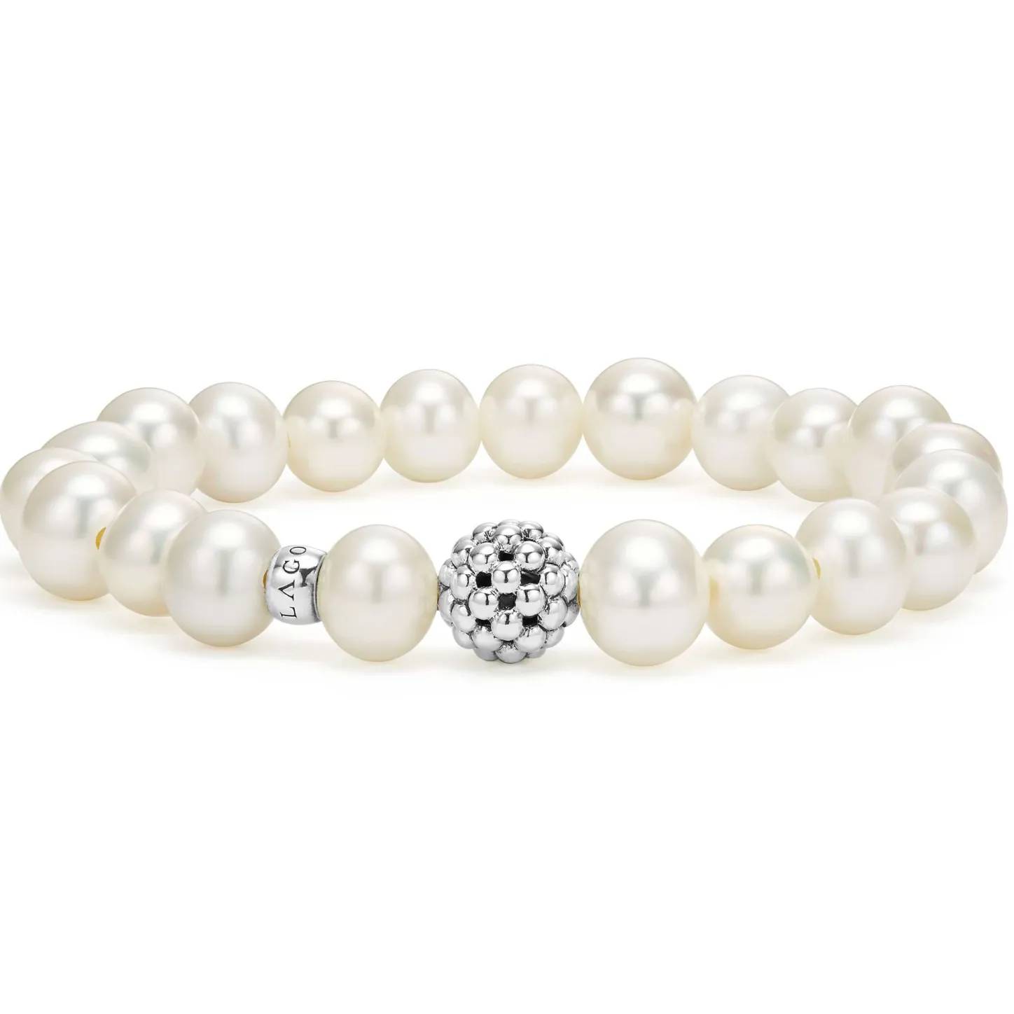 A Lagos Exclusive. Three Classic Bracelets To Layer And Make Your Own. One Stretch Bracelet Made Of Cultured Freshwater Pearls Bracelet. One Classic 6Mm Caviar Bracelet With A Cultured Freshwater Pearl And 18K Gold X Stations. One Classic Sterling Silver And 18K Gold Station 6Mm Caviar Bracelet.