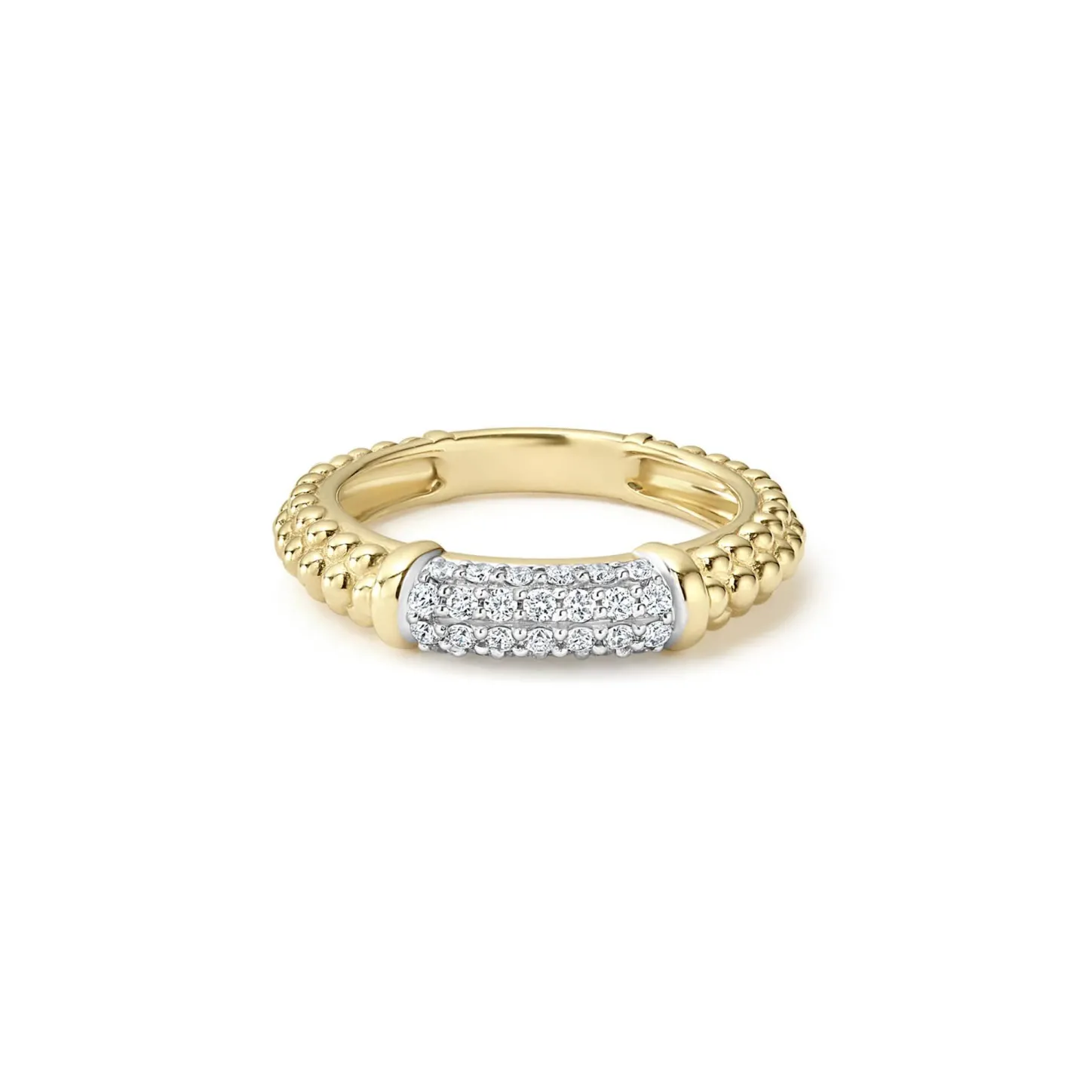 Pavé Diamonds Set In 18K Gold With Caviar Beaded Accents On This Classic Band Ring. Lagos Diamonds Are The Highest Quality Natural Stones.