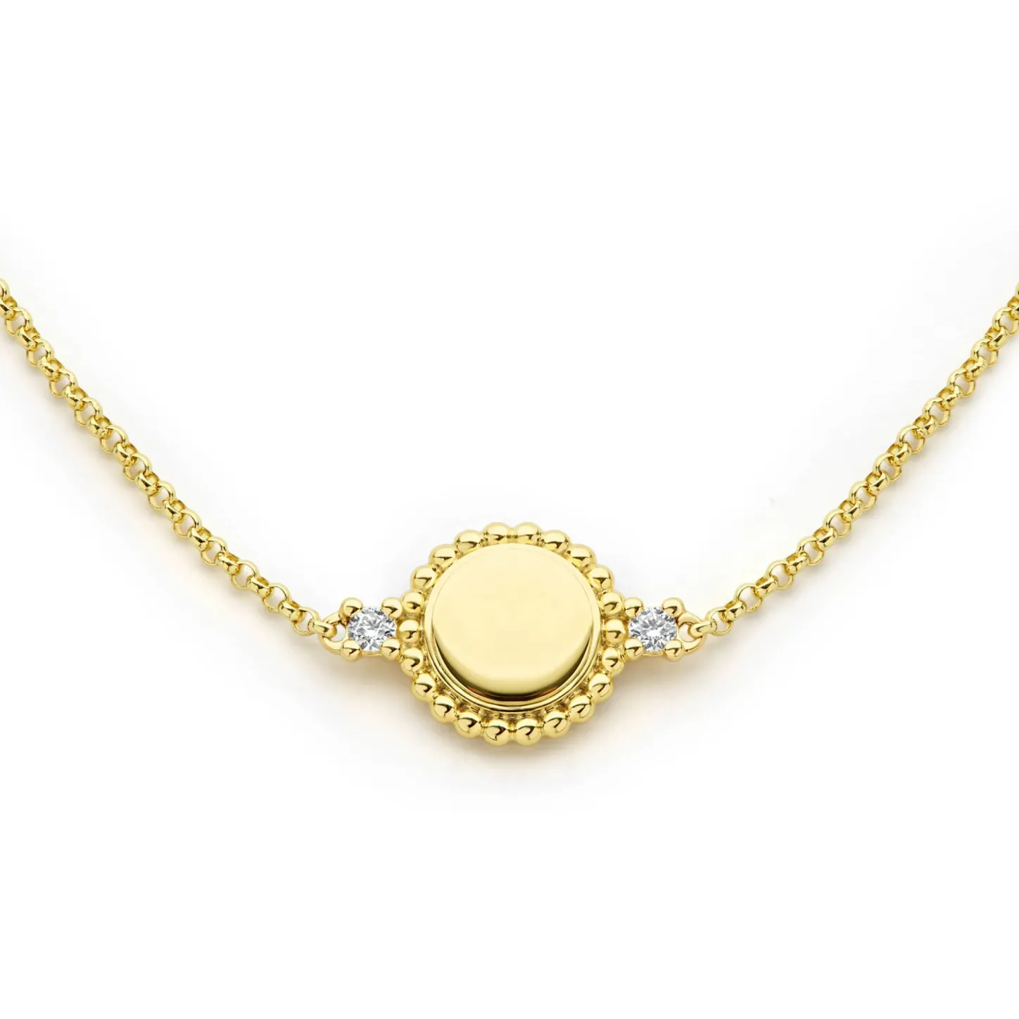 A Lagos Exclusive. 18K Gold Bracelet Accented By Two Brilliant Diamonds And Caviar Beaded Details. Lagos Diamonds Are The Highest Quality Natural Stones.