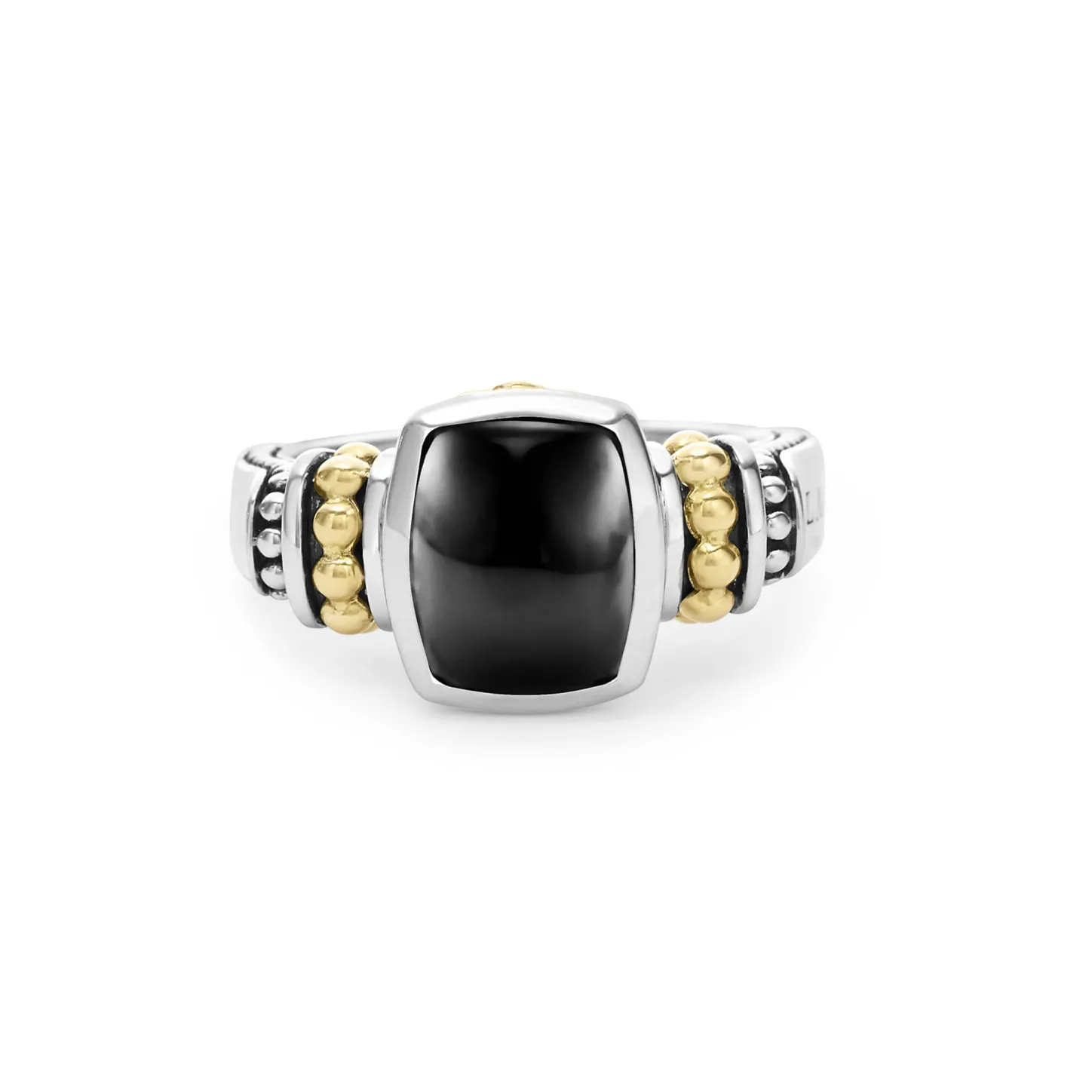 Onyx Bezel-Set Gemstone Ring With 18K Caviar Beading On A Sterling Silver Band.