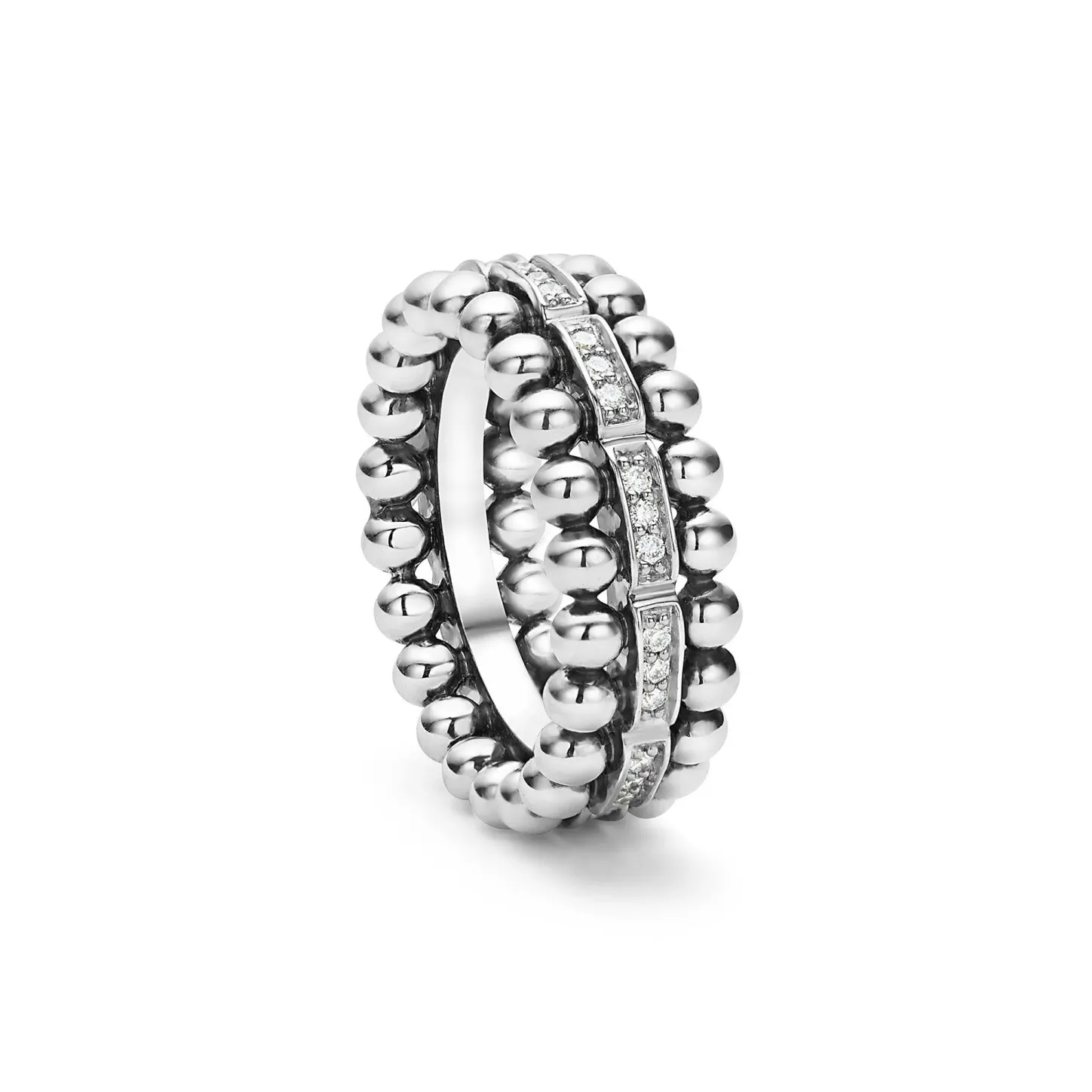 Diamonds Framed By Sterling Silver Caviar Beading Form This Classic Band Ring. Lagos Diamonds Are The Highest Quality Natural Stones.
