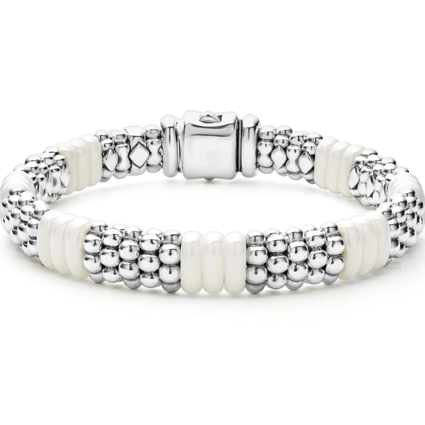 Caviar Beading In Sterling Silver And Smooth White Ceramic Form This Signature Bracelet.