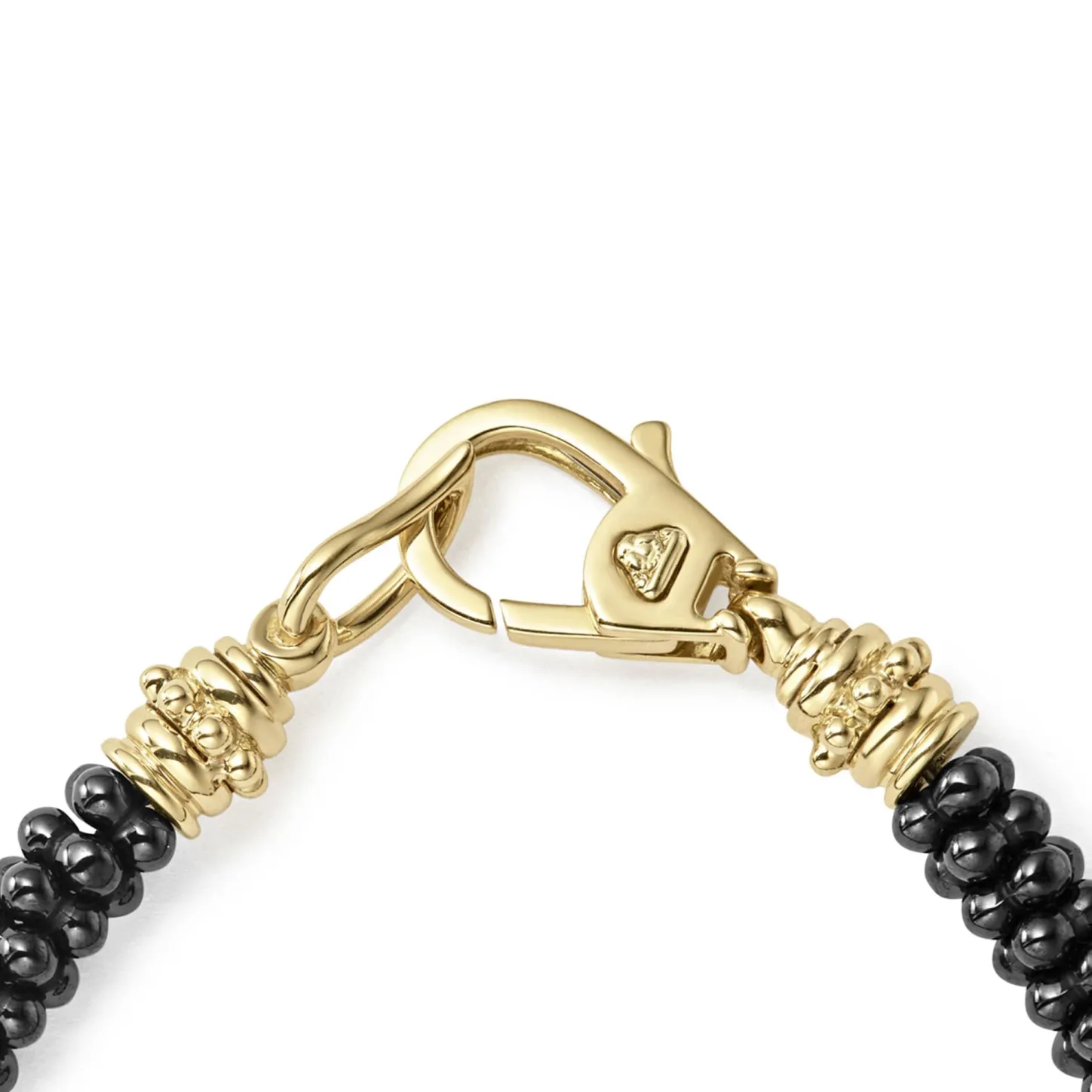 Five Medium Gold Bead Stations Highlighted By Black Ceramic Caviar Beading Form This Signature Bracelet.