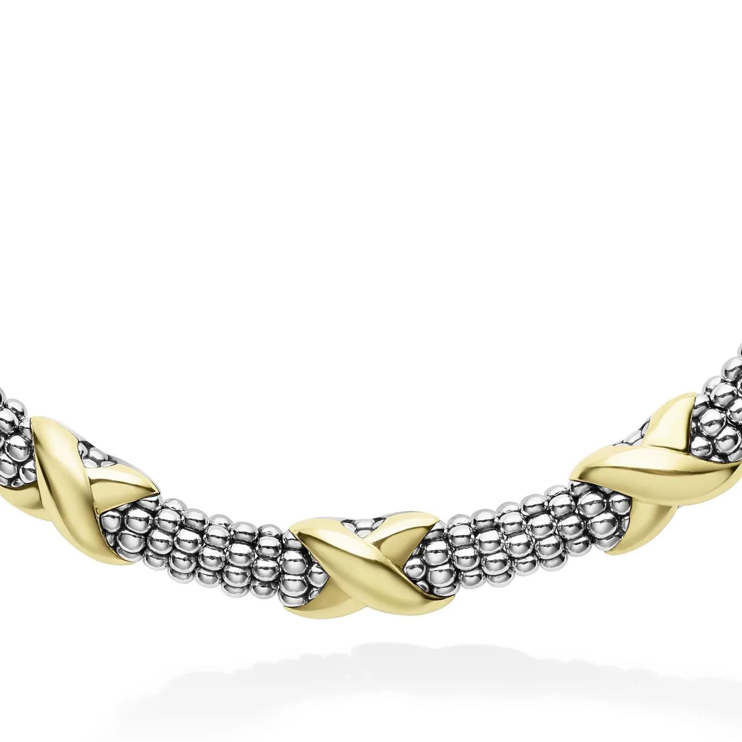 Sterling Silver Caviar Beading Accented By Five 18K Gold X Stations Form This Detailed Lagos Necklace.