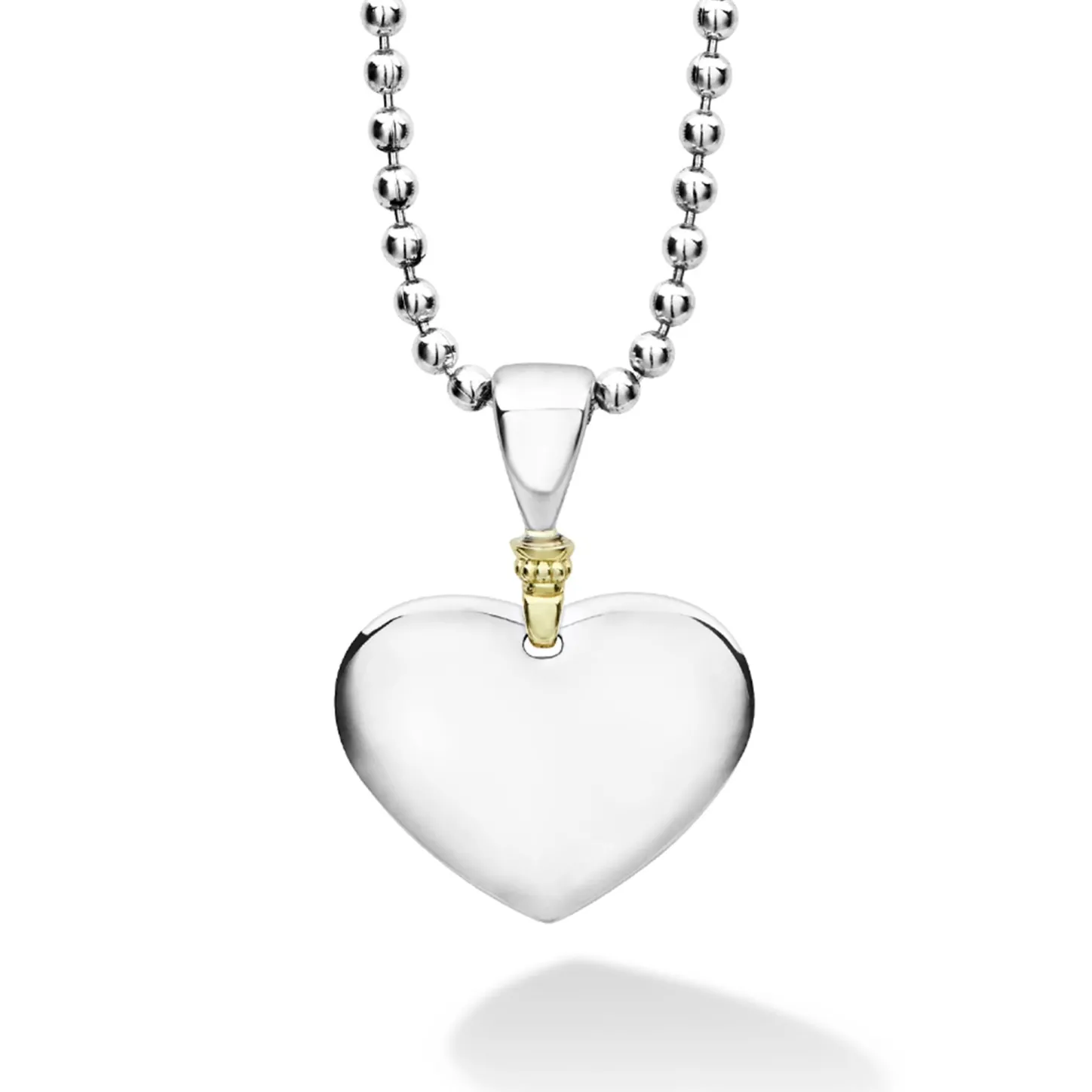 A Lagos Exclusive. Highly Polished Sterling Silver Heart Necklace With 18K Gold Beading. Ideal For A Modern Initial Or Classic Monogram.