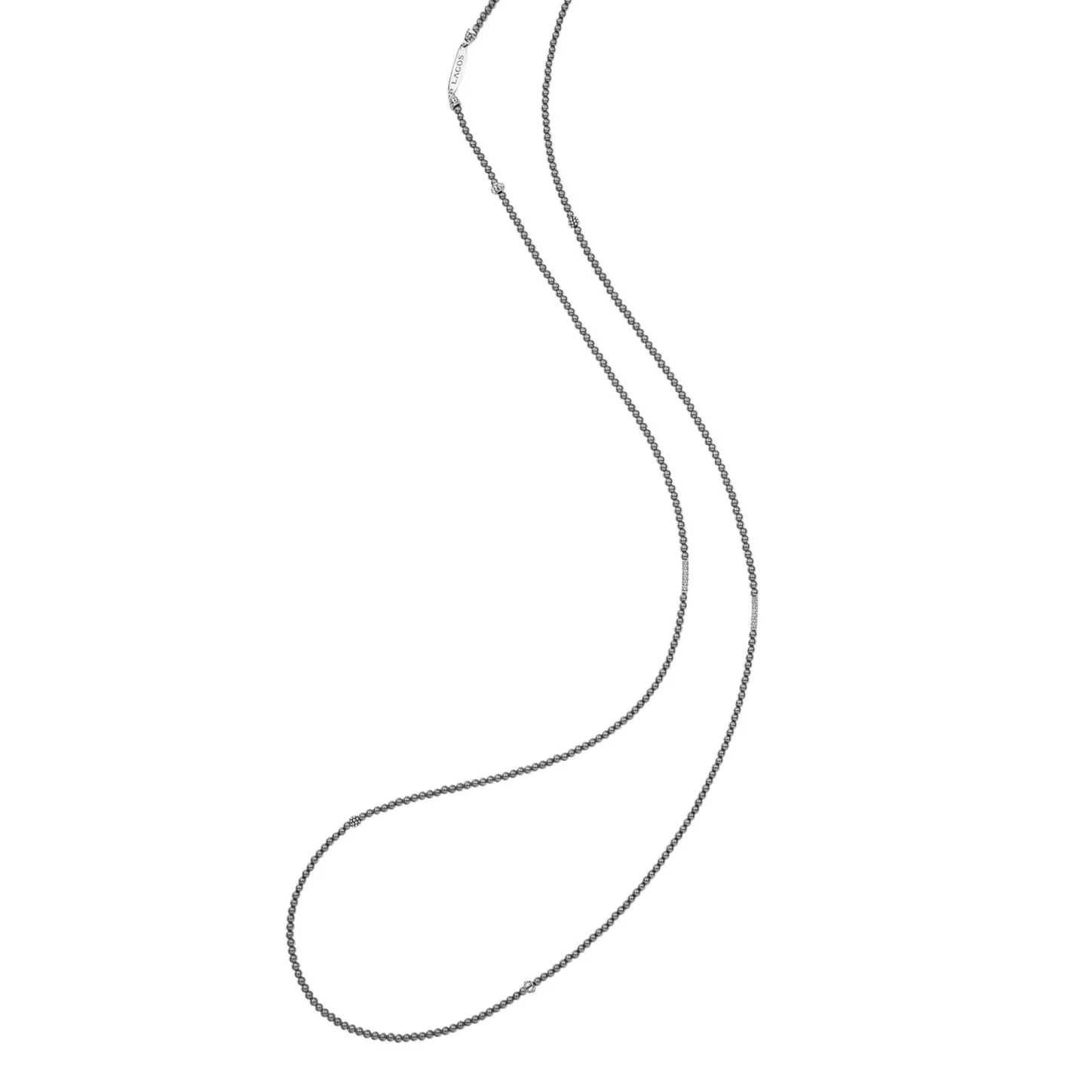 Hematite Gemstone Beaded Necklace With Caviar Beading And Fluted Accents. Gemstones Are Natural With Unique Hues. Variations From The Colors Shown Make Each Necklace Unique.