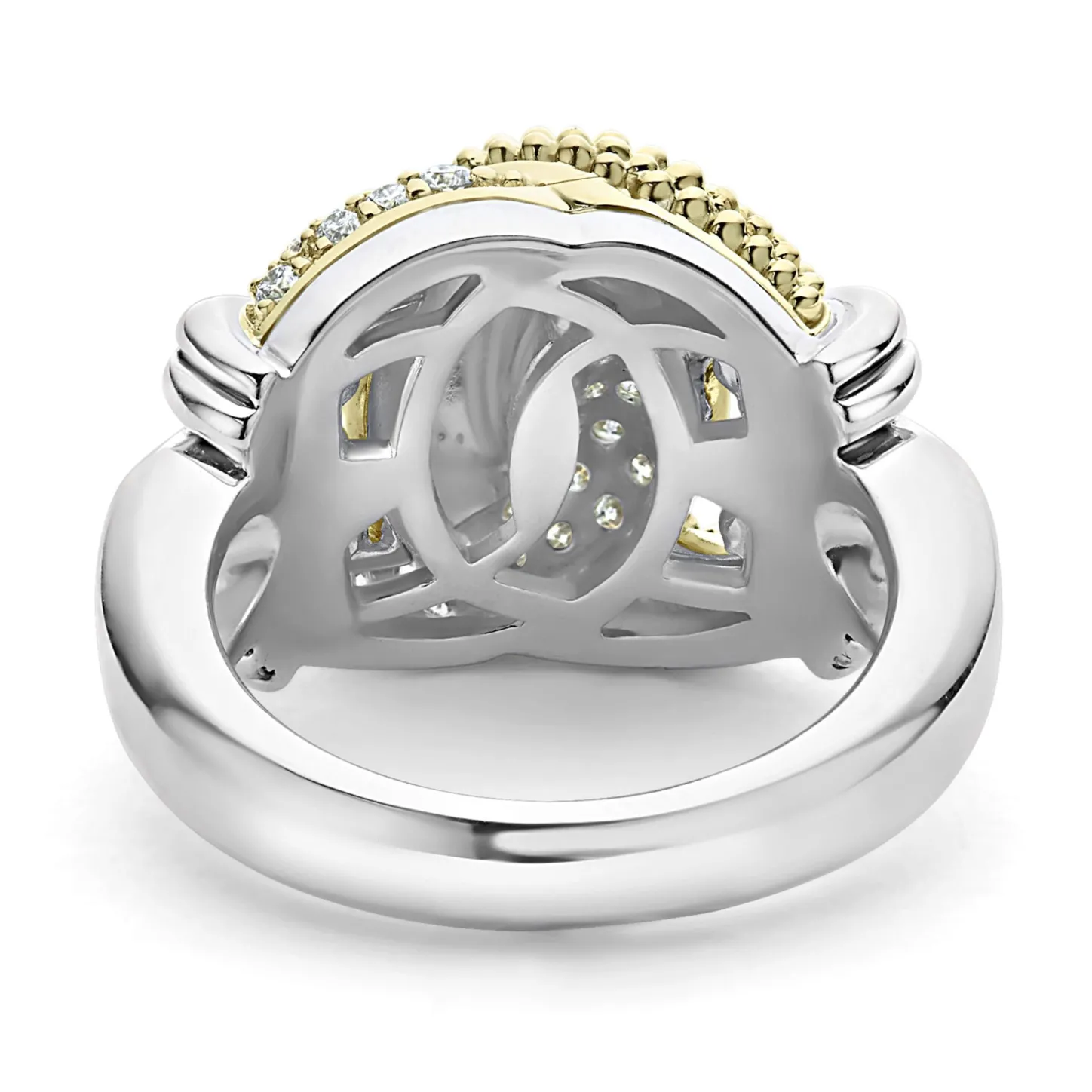 Diamonds And 18K Gold Woven In A Twisted Knot Motif Form This Statement Ring. Lagos Diamonds Are The Highest Quality Natural Stones.