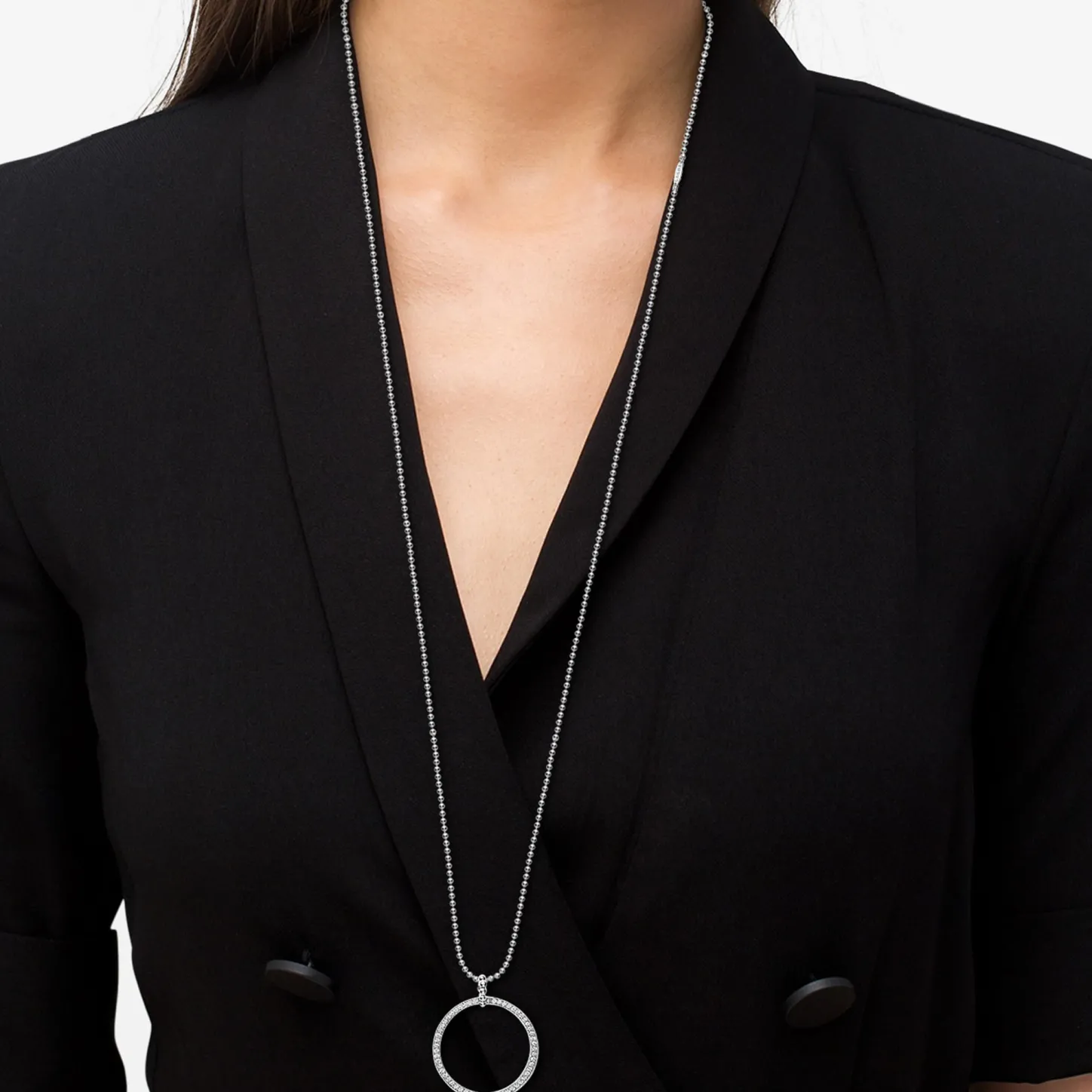 A Diamond Circle Pendant Framed By Sterling Silver Finished On A 34 Inch Versatile Ball Chain Necklace. Lagos Diamonds Are The Highest Quality Natural Stones.
