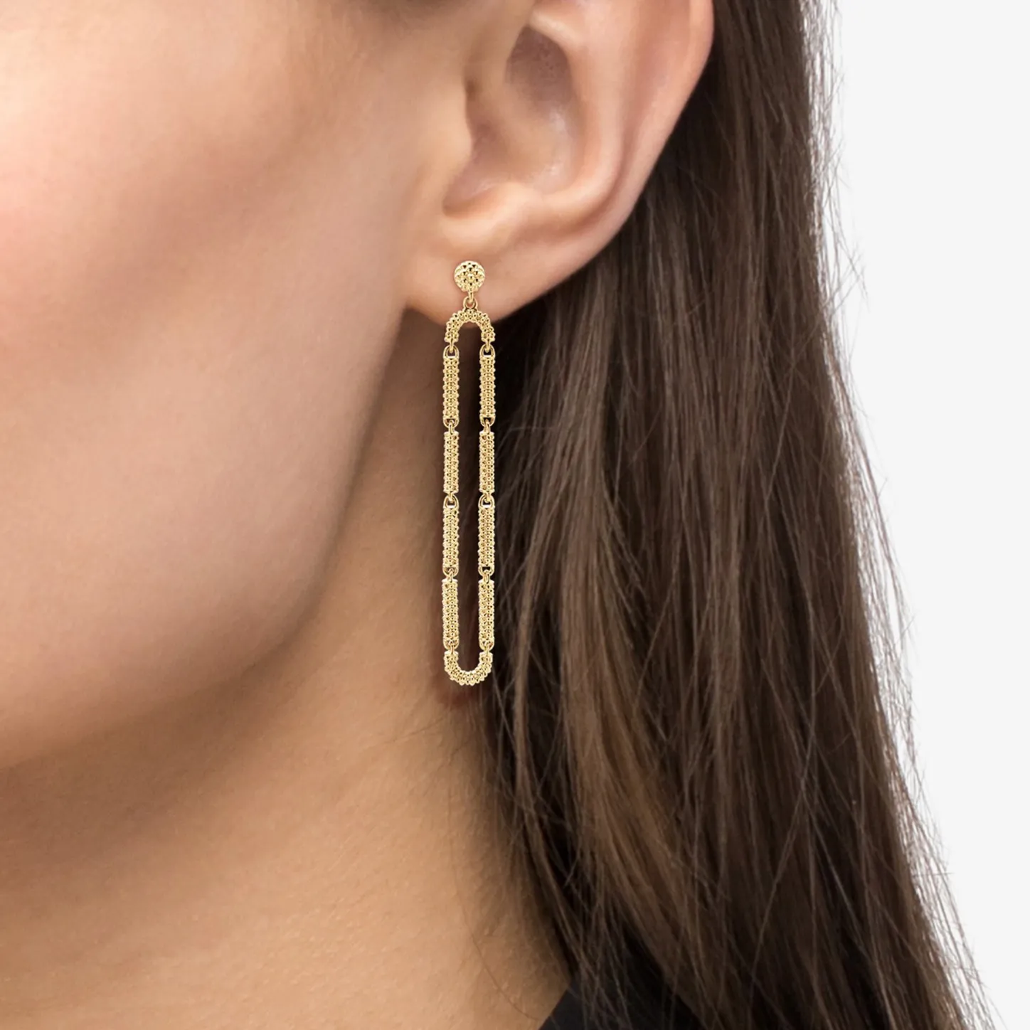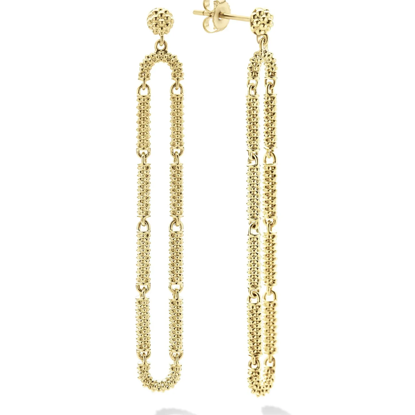 Long 18K Gold Superfine Caviar Beaded Oval Drop Earrings.
