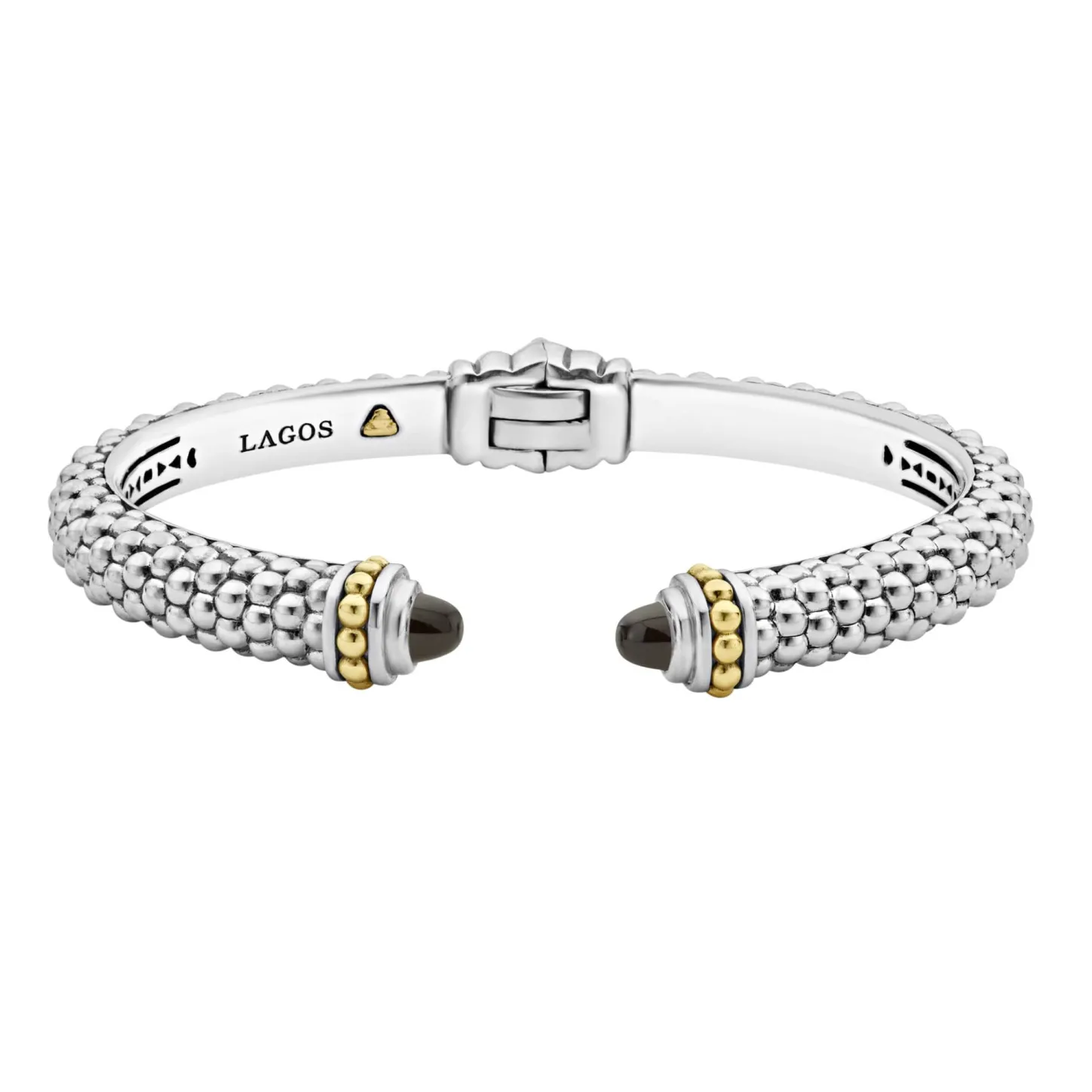 Caviar Beading And Highly Polished Sterling Silver Stations Comprise This Innovative Cuff Bracelet Detailing Onyx Gemstone End Caps.