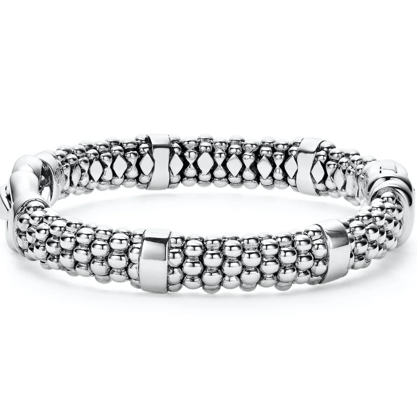 A Sterling Silver Buckle Design Accents Caviar Beading To Form This Signature Bracelet.