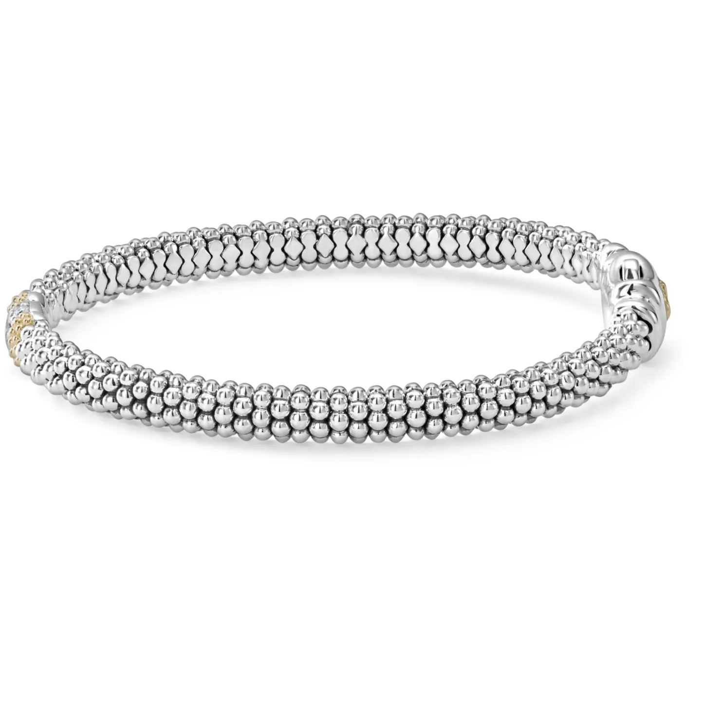 Diamonds Highlighted By 18K Gold With Sterling Silver Caviar Beading. Lagos Diamonds Are The Highest Quality Natural Stones.