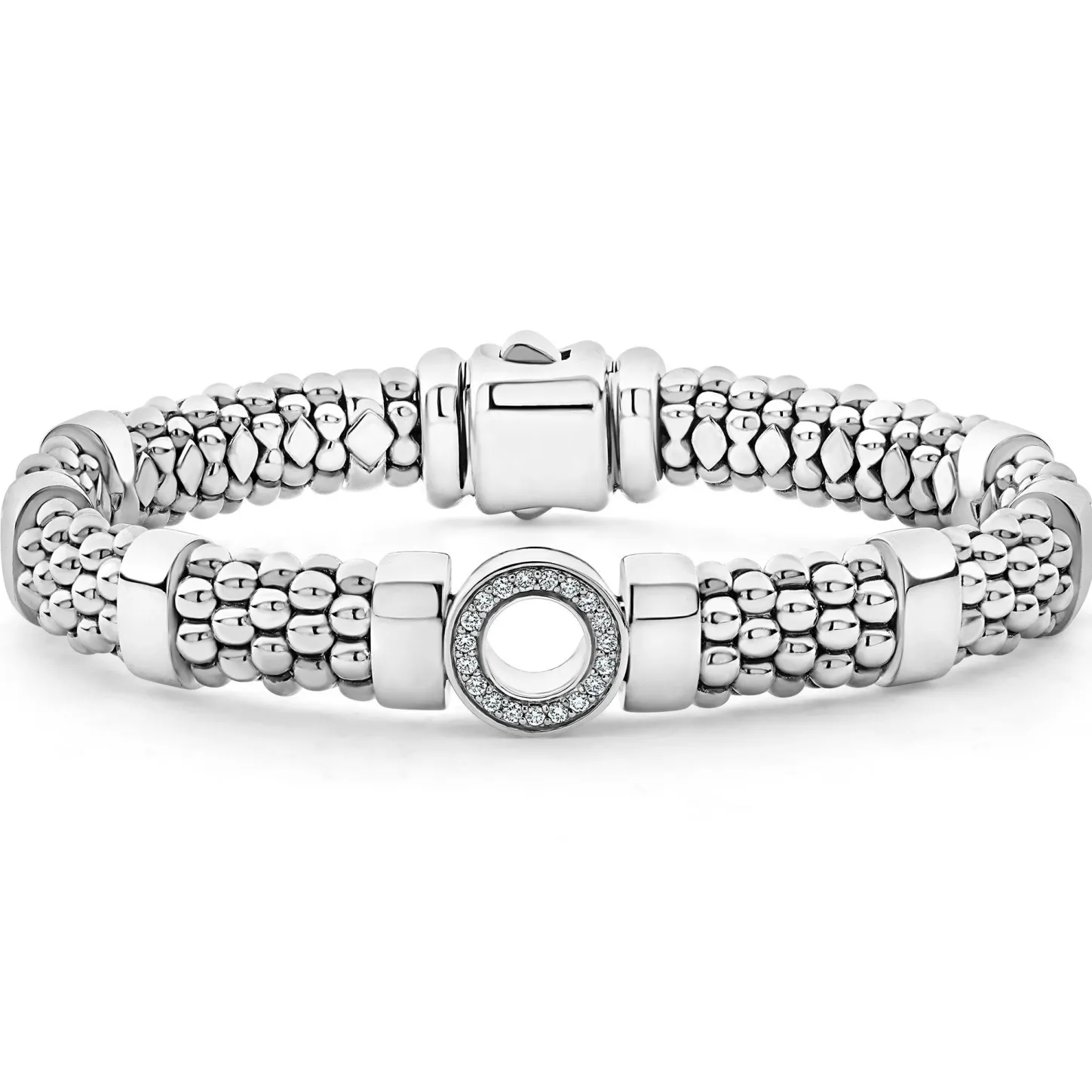 A Sterling Silver Bracelet With One Diamond Circle Station. Lagos Diamonds Are The Highest Quality Natural Stones.