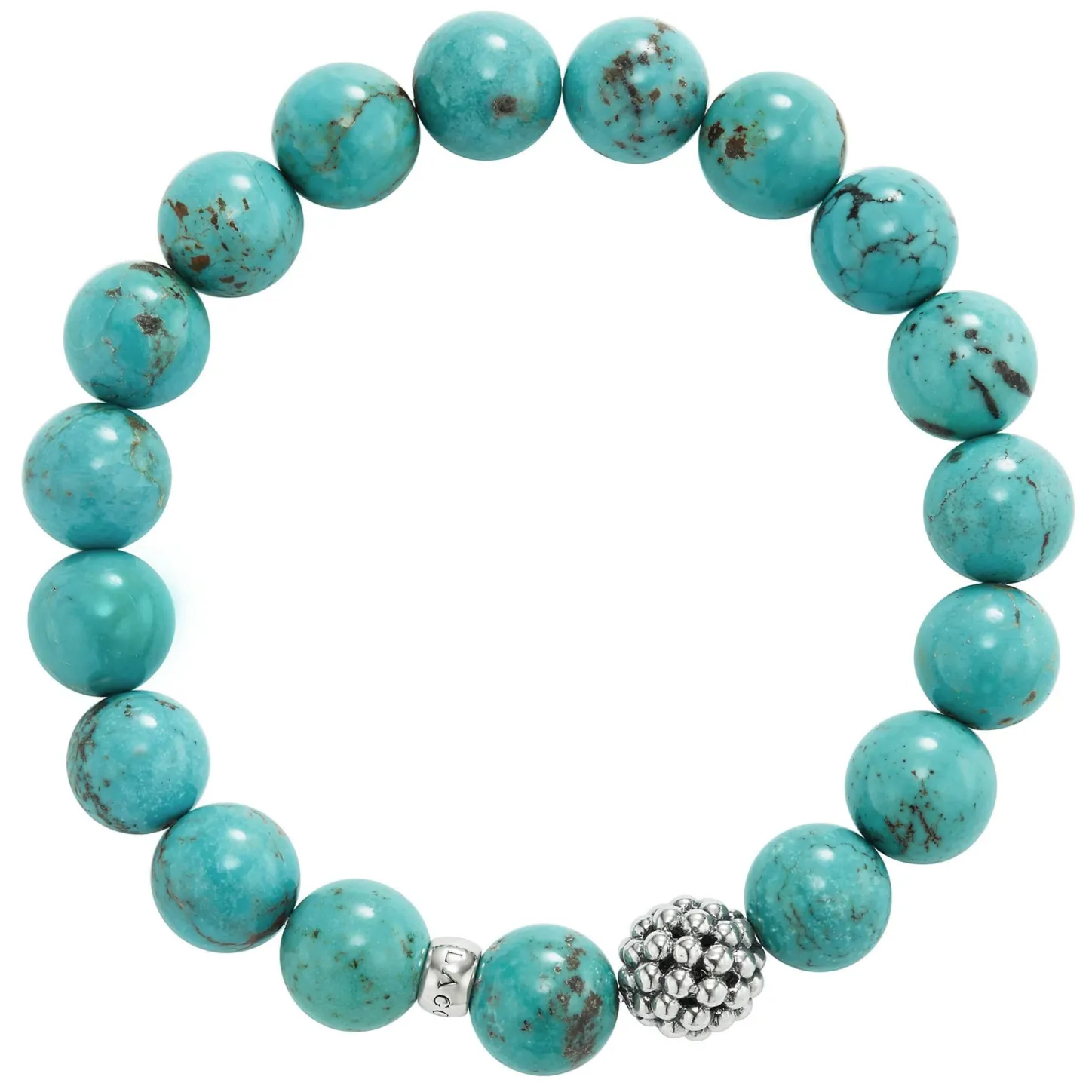 Turquoise Gemstone Bracelet With A Sterling Silver Caviar Beaded Station.