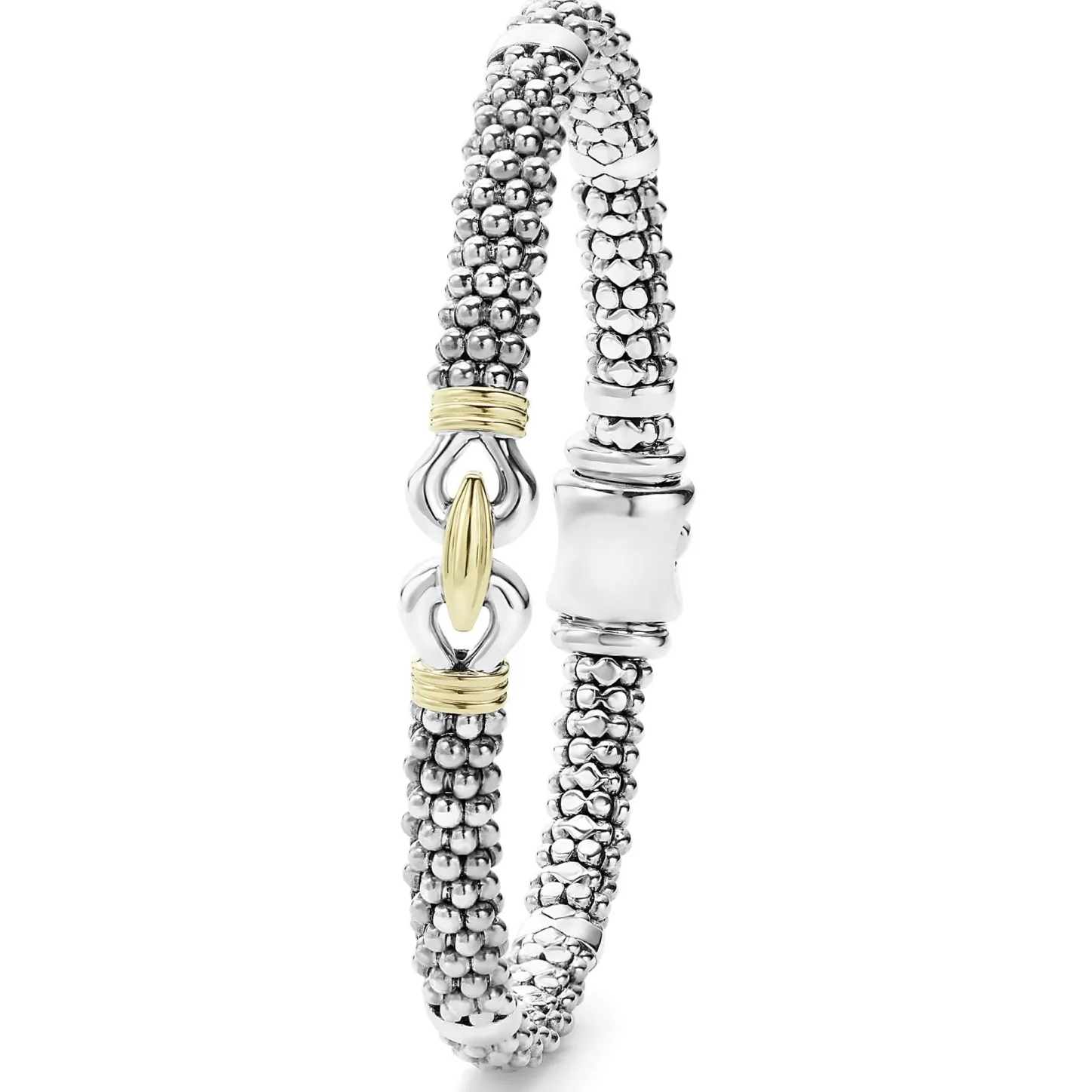 Fluted 18K Gold Stations Highlight A Sterling Silver Buckle On This Classic Caviar Beaded Derby Bracelet.
