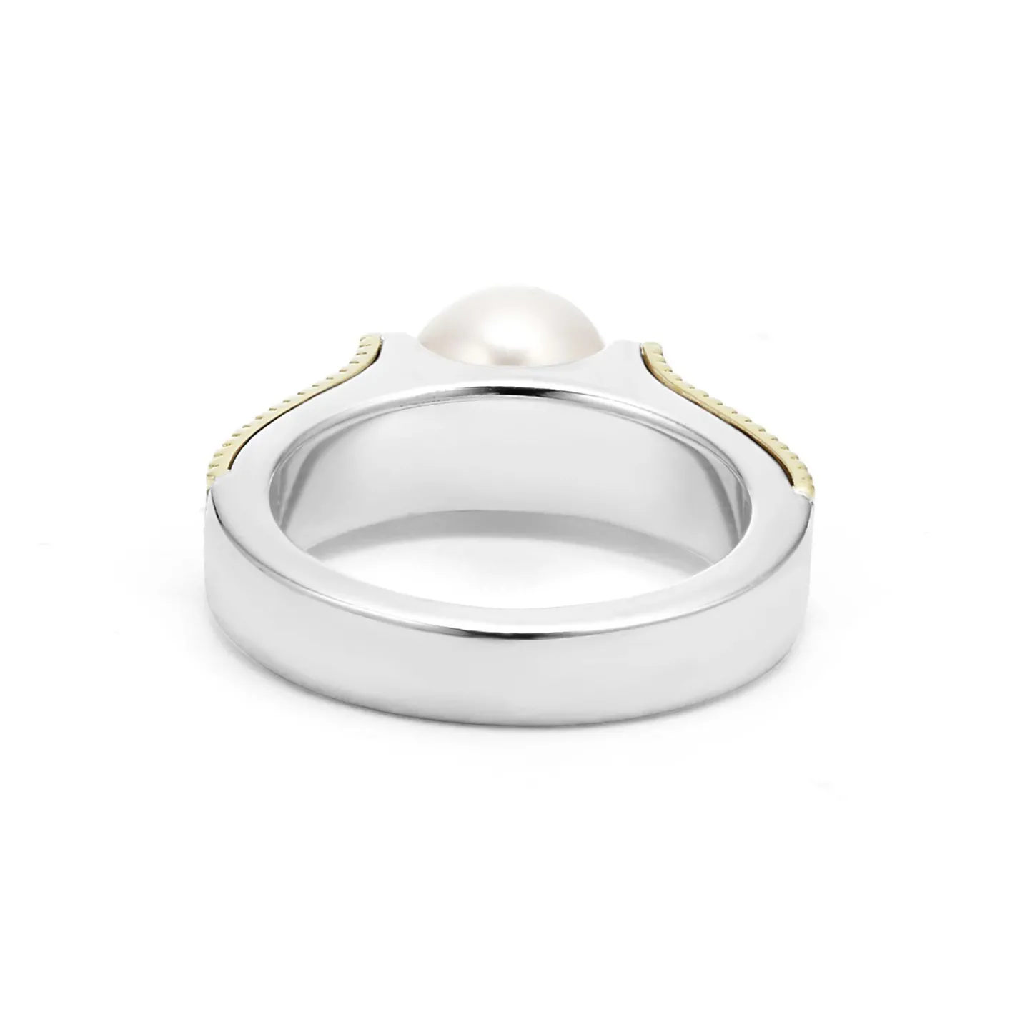 18K Gold Caviar Beading And Sterling Silver Form This Cultured Freshwater Pearl Ring.