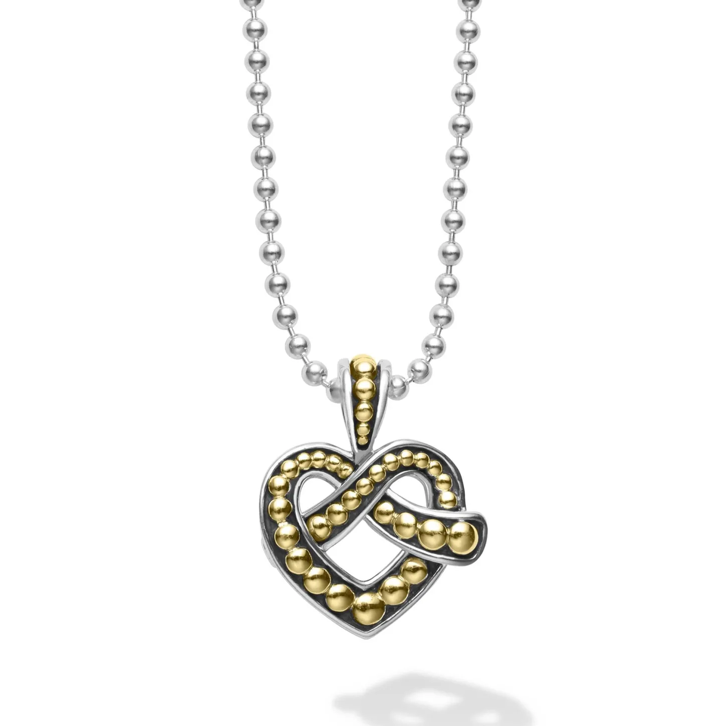 Sterling Silver And 18K Gold Intertwine To Form This Unique Beloved Heart Pendant Finished On A Sterling Silver Beaded Chain.