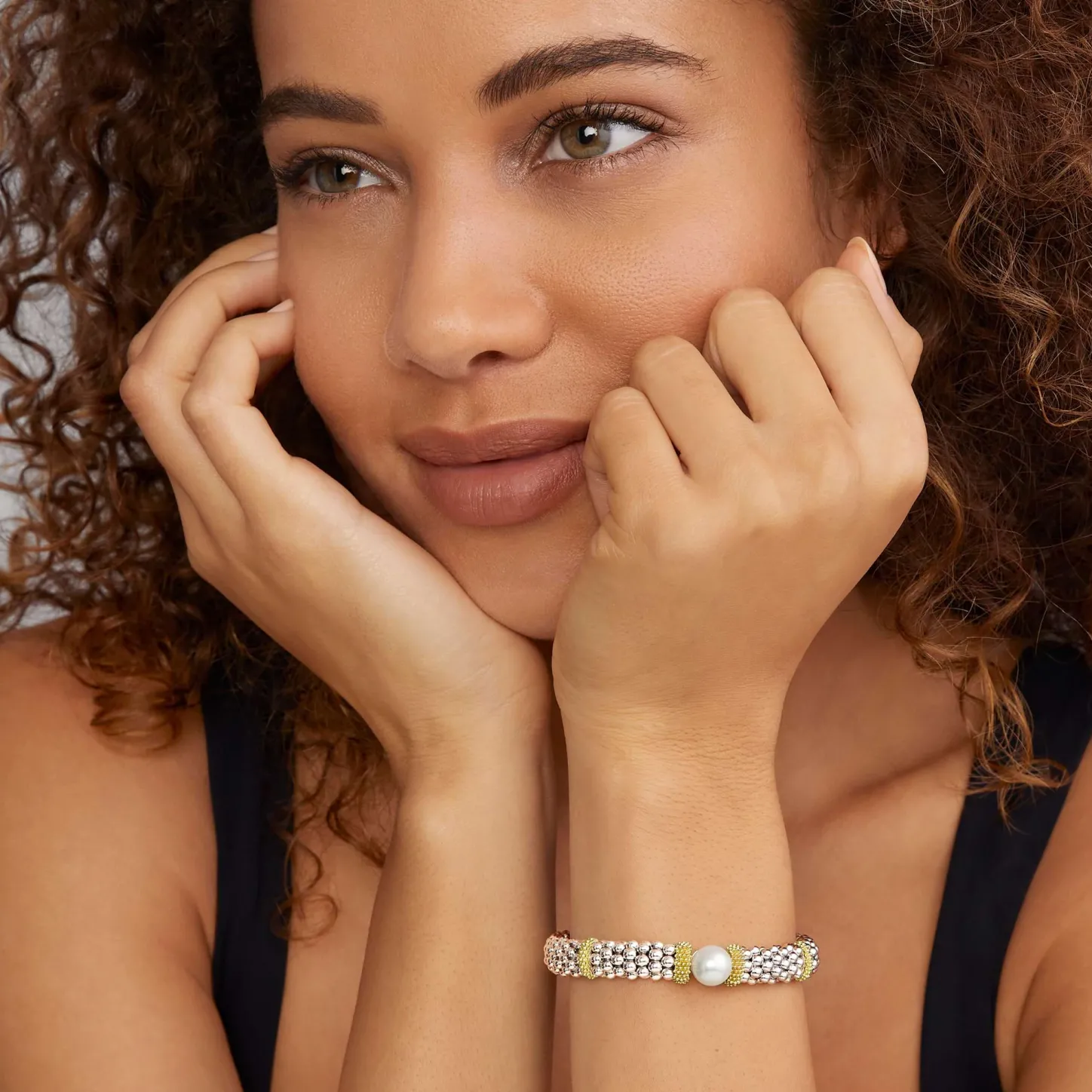 A Sterling Silver Caviar Bracelet With A Freshwater Cultured Pearl Accented By 18K Gold Stations.