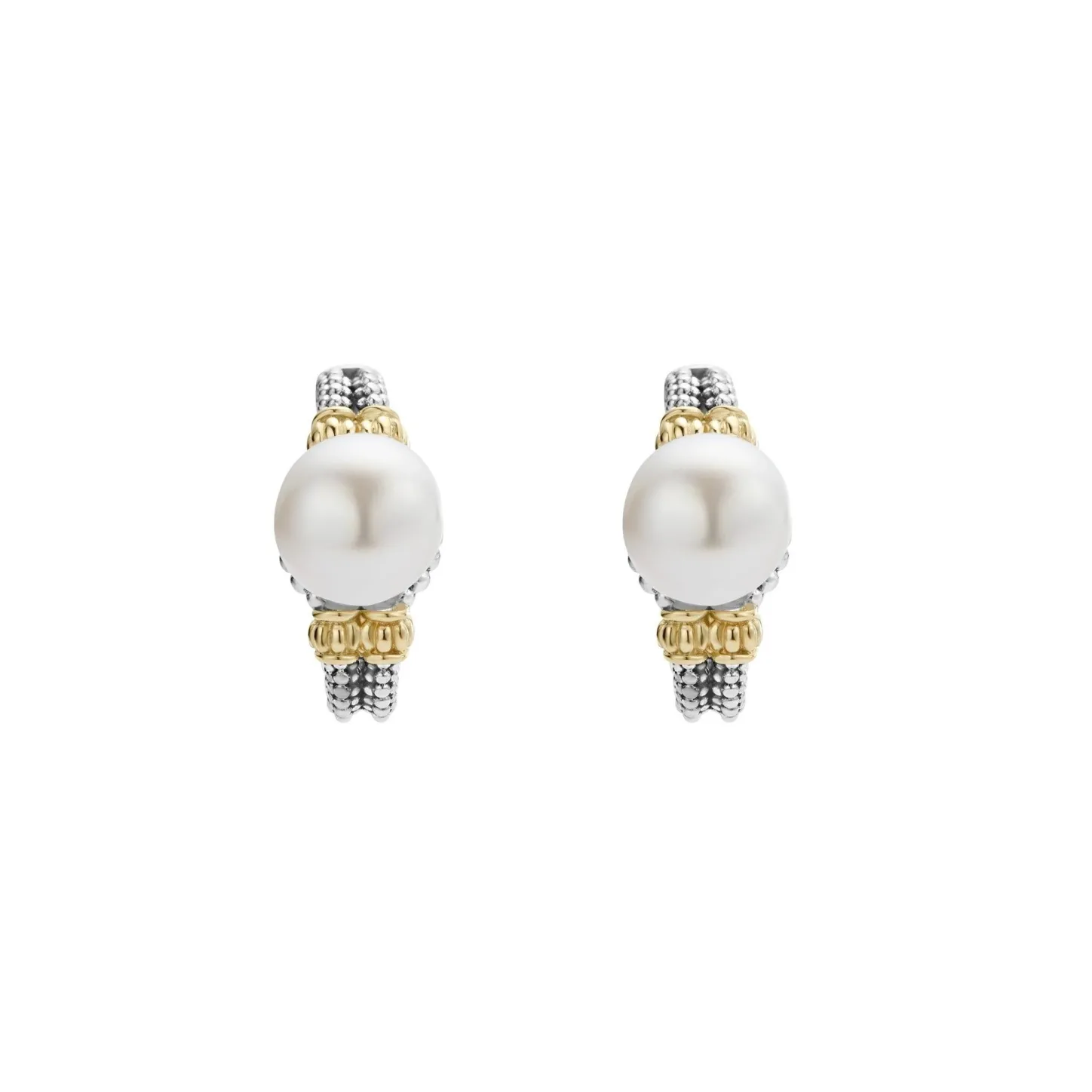 Cultured Freshwater Pearl Earrings With Sterling Silver Caviar Beading And 18K Gold Fluted Accents.