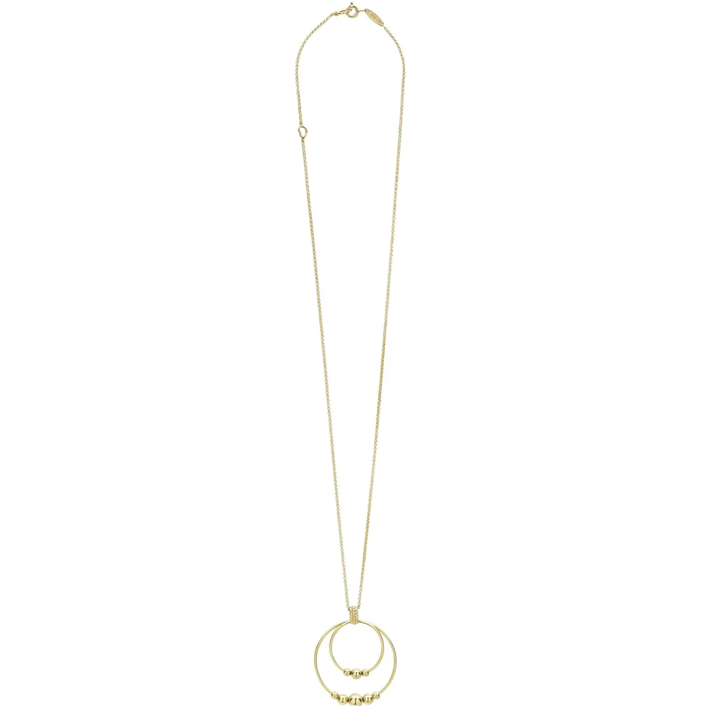 Two 18K Gold Circles With Graduated Beaded Accents Form This Pendant Finished On A Chain Necklace.
