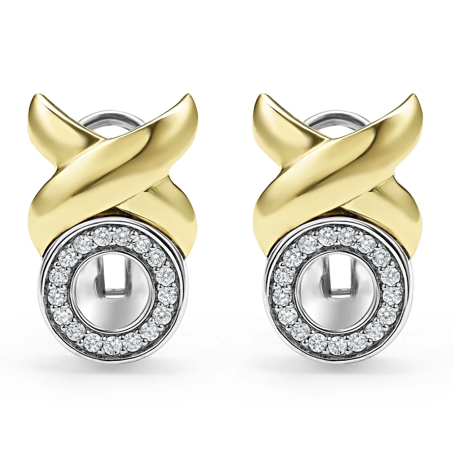 Sterling Silver, Diamonds And A Smooth 18K Gold X-Motif Form These Omega Clip Earrings.