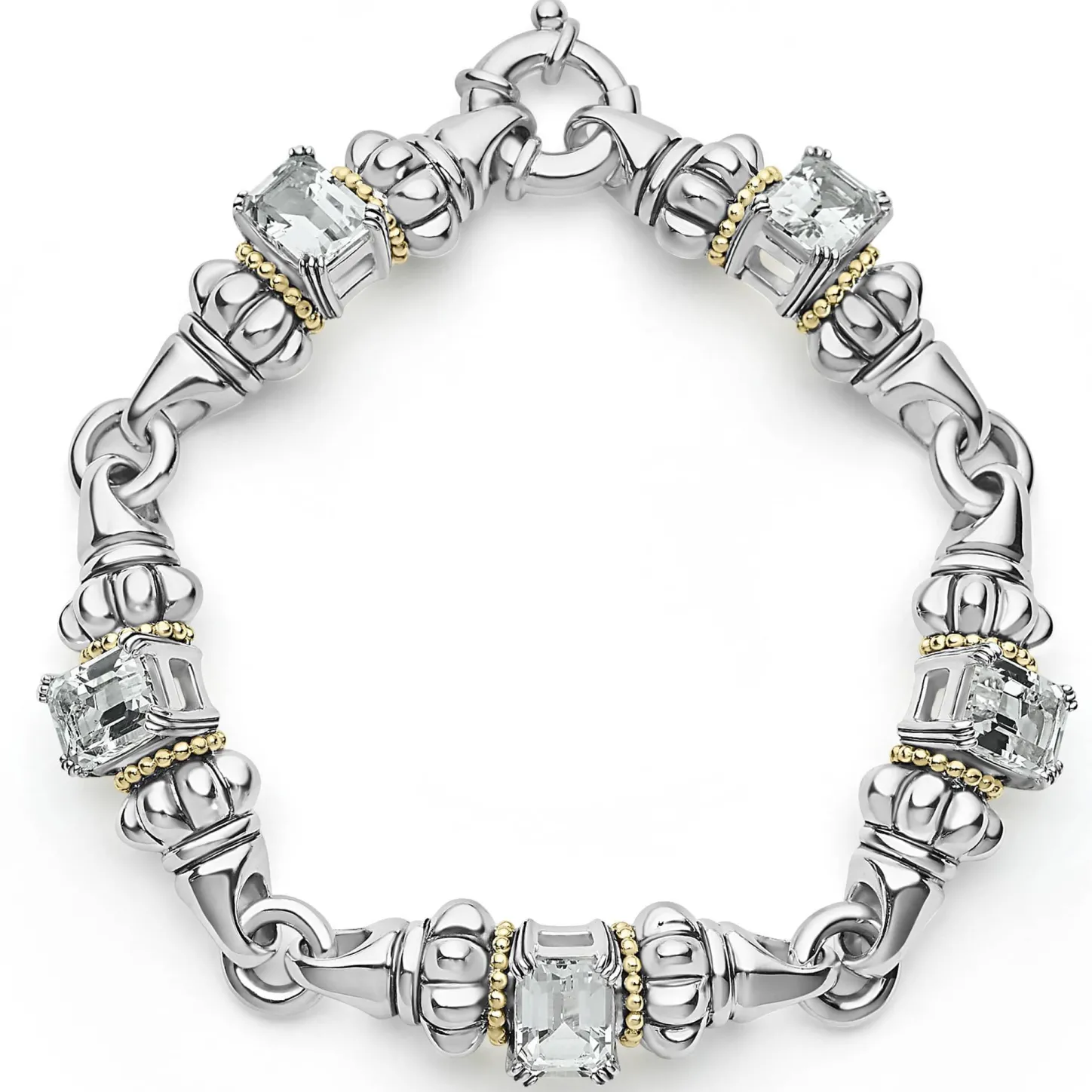 Five White Topaz Emerald-Cut Gemstones, With 18K Gold And Sterling Silver Detailing Form This Bracelet.