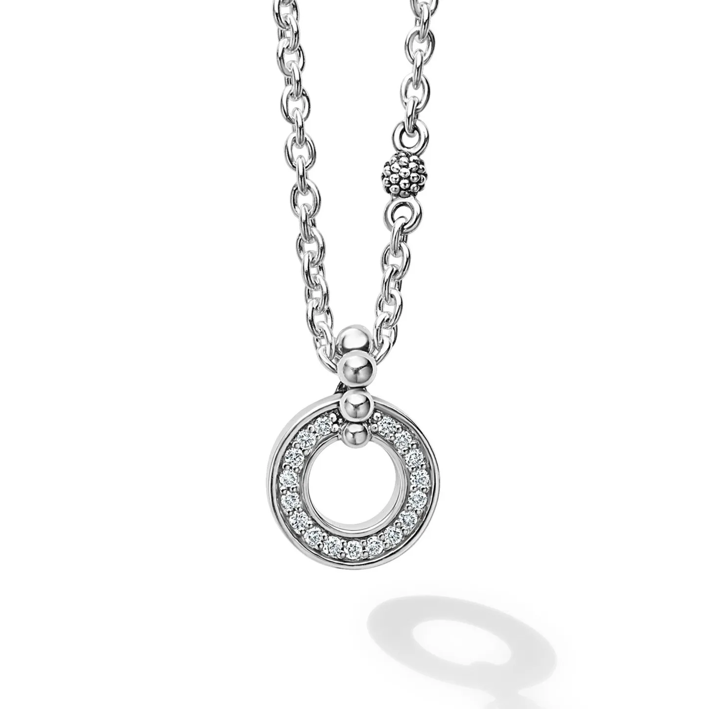 A Lagos Exclusive. Caviar Spark Gift Set Includes Diamond Circle Caviar Beaded Earrings And A Diamond Pendant Set In Sterling Silver On An Adjustable 16 To 18 Inch Necklace. Lagos Diamonds Are The Highest Quality Natural Stones.