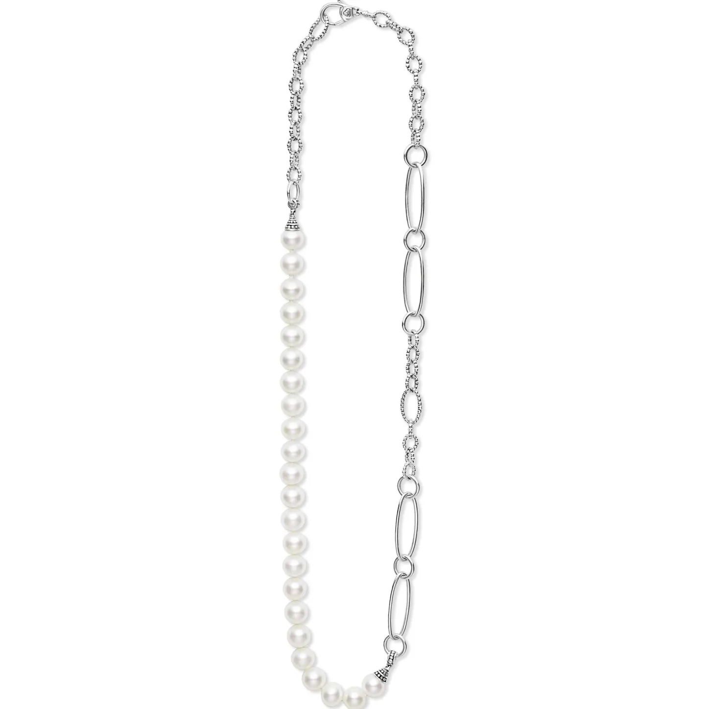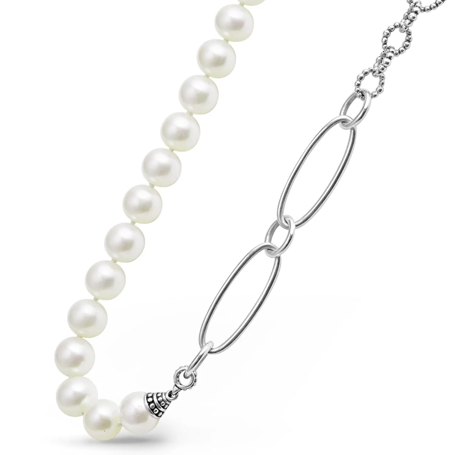 Cultured Freshwater Pearl Stations Highlighted With Caviar Beading On A Signature Sterling Silver Caviar Beaded Necklace.
