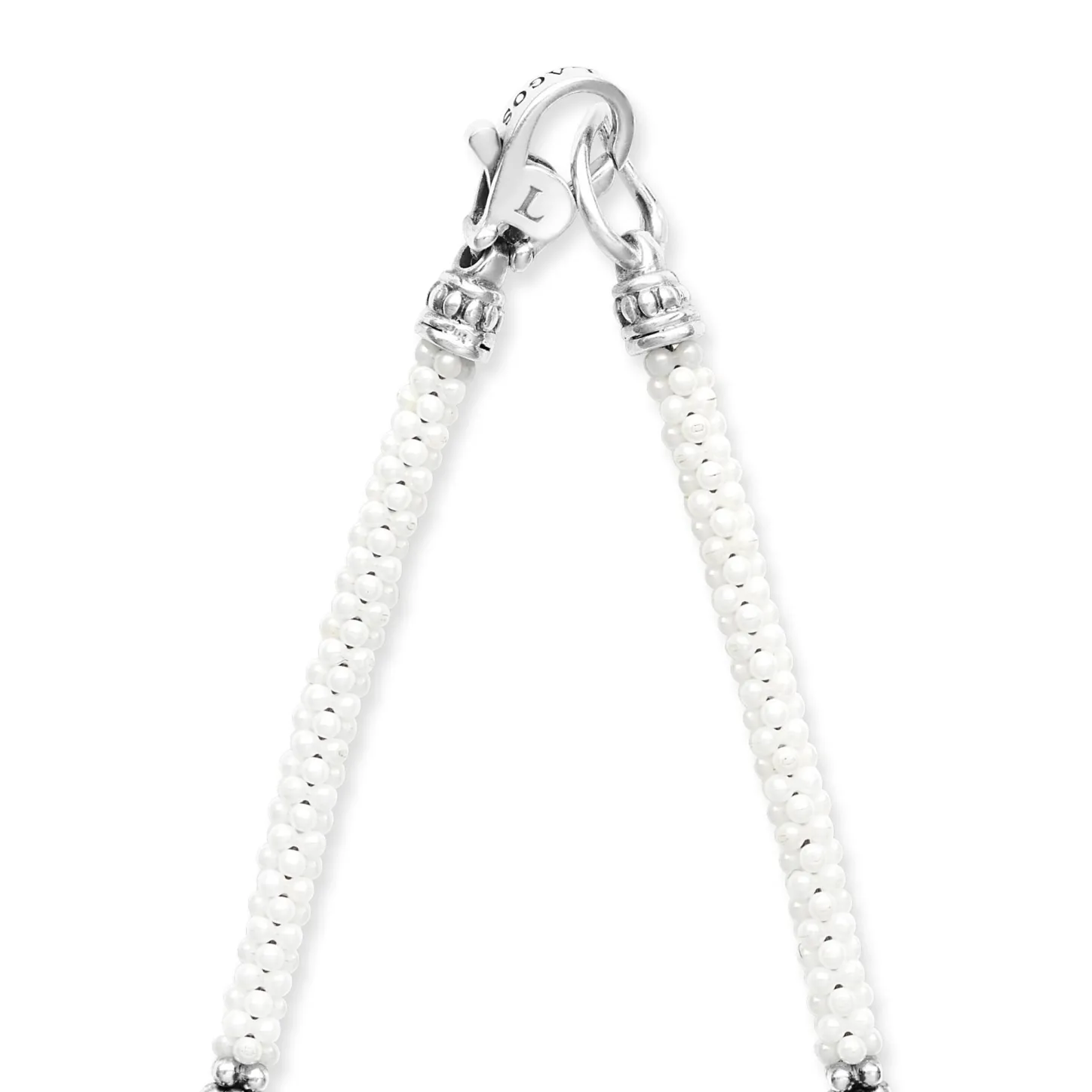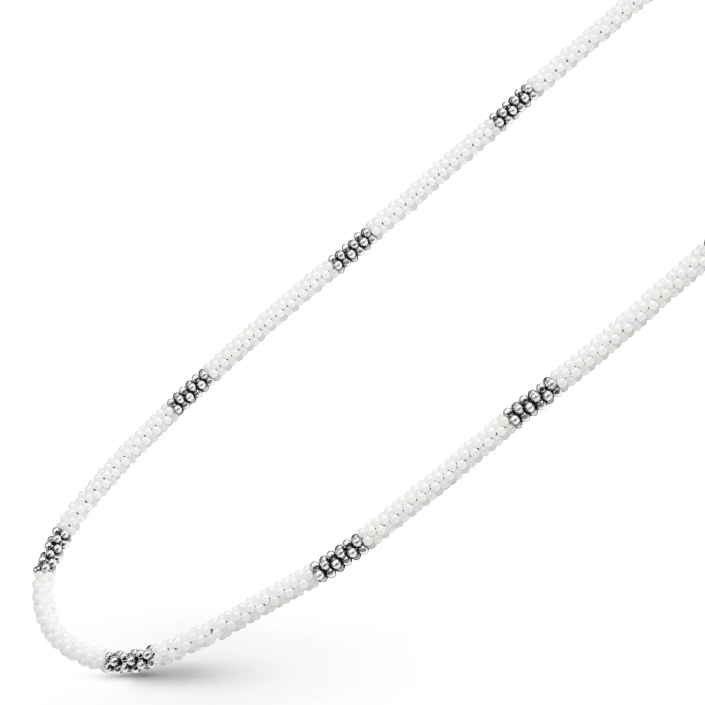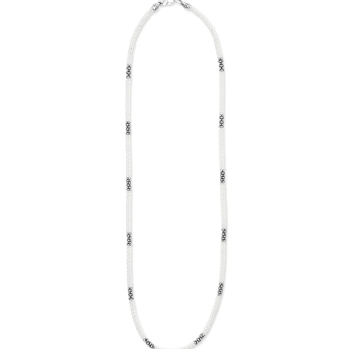 A White Ceramic And Sterling Silver Caviar Beaded Necklace That Is Finished With Signature Lobster Clasp.
