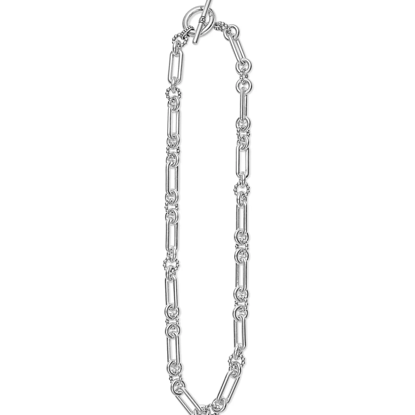 - One Sterling Silver Link Necklace Created From Variations Of Caviar Beading & Fluting Elements. Length Measures 20 Inches.