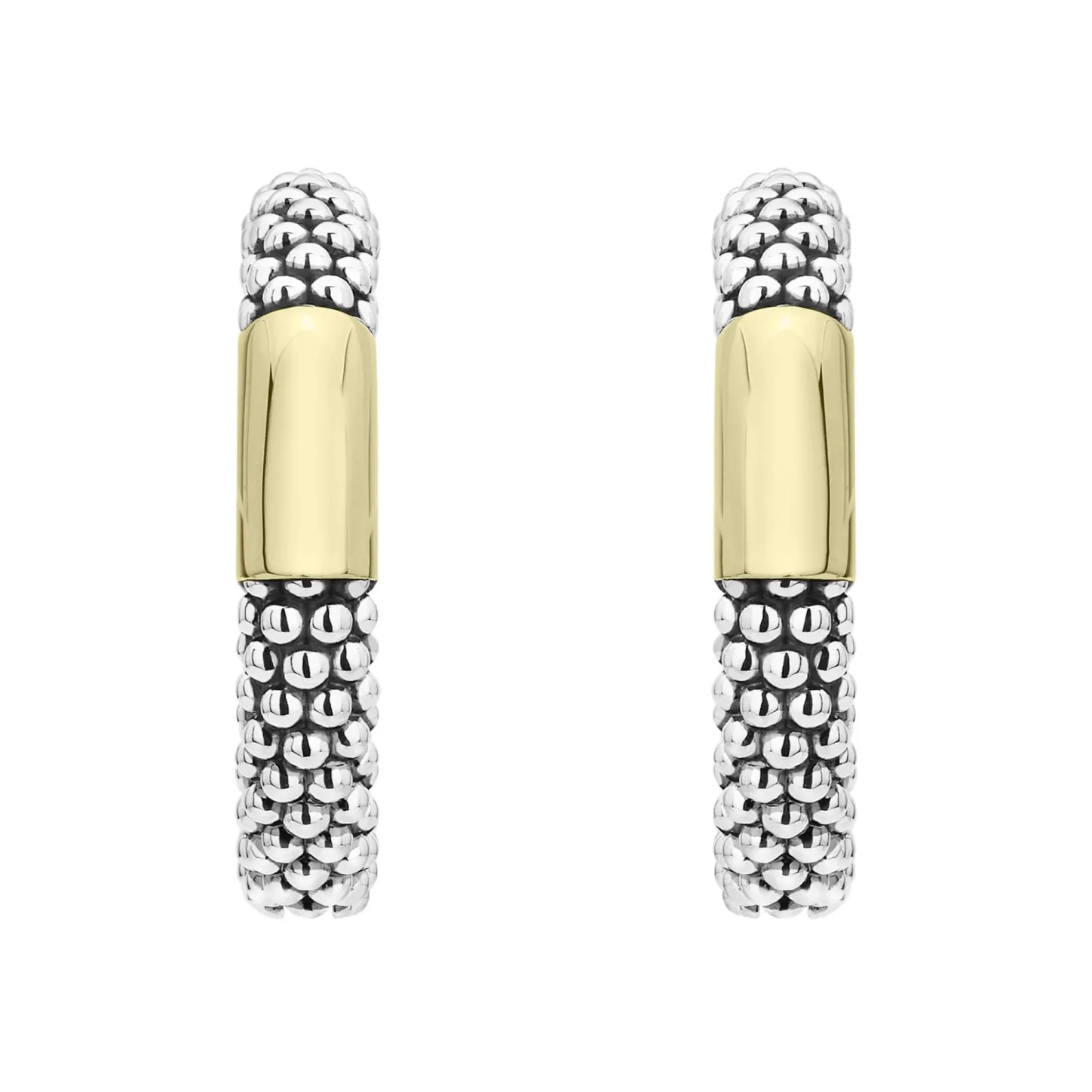 Hoop Earrings With Smooth 18K Gold And Classic Sterling Silver Caviar Beading.