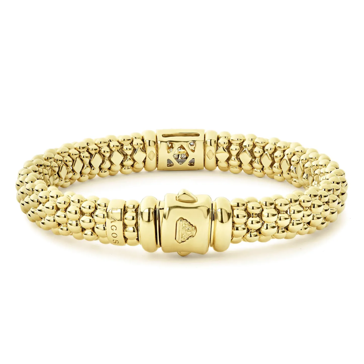 Pavé Diamonds Surrounded By 18K Gold Caviar Beading Form This Lasting Bracelet. Lagos Diamonds Are The Highest Quality Natural Stones.