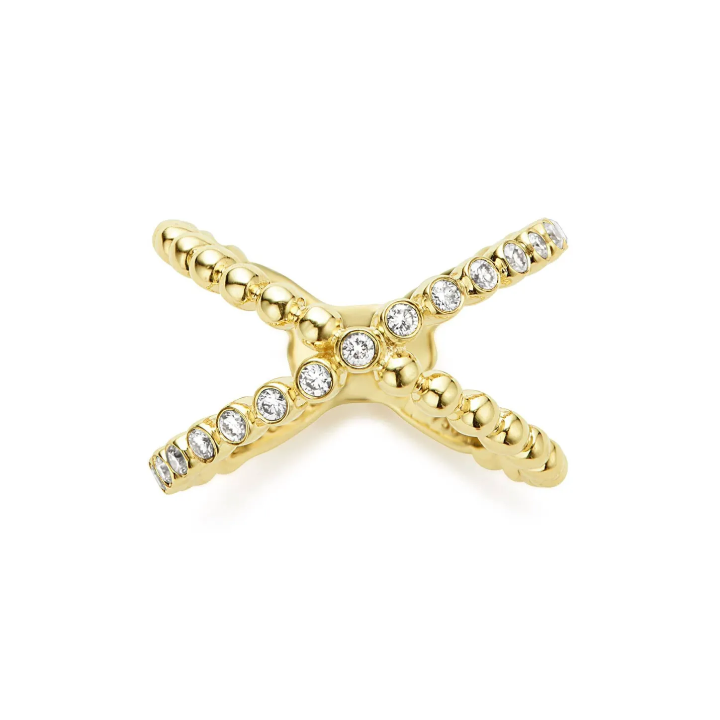Diamonds Set By 18K Gold Beading Form This Signature X Ring. Lagos Diamonds Are The Highest Quality Natural Stones.