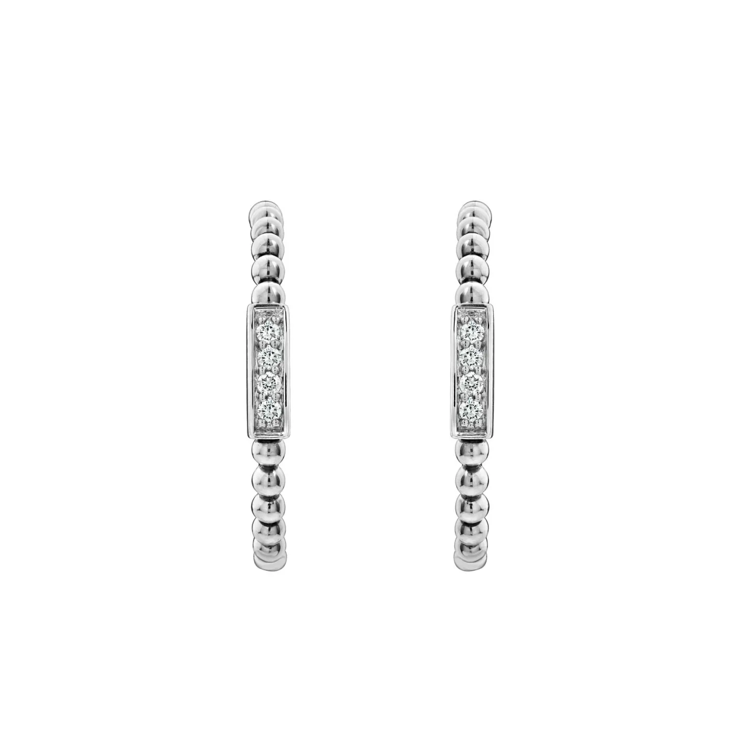 A Diamond Station Accents This Sterling Silver Caviar Beaded Hoop Earring. Lagos Diamonds Are The Highest Quality Natural Stones.