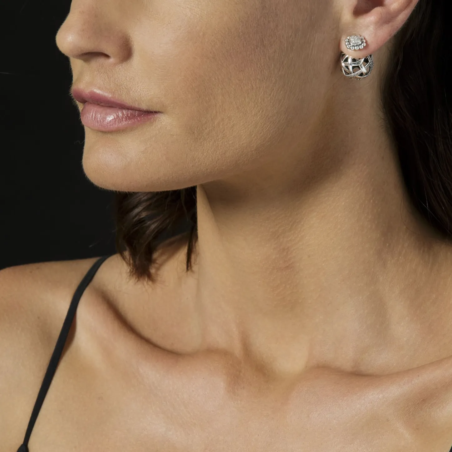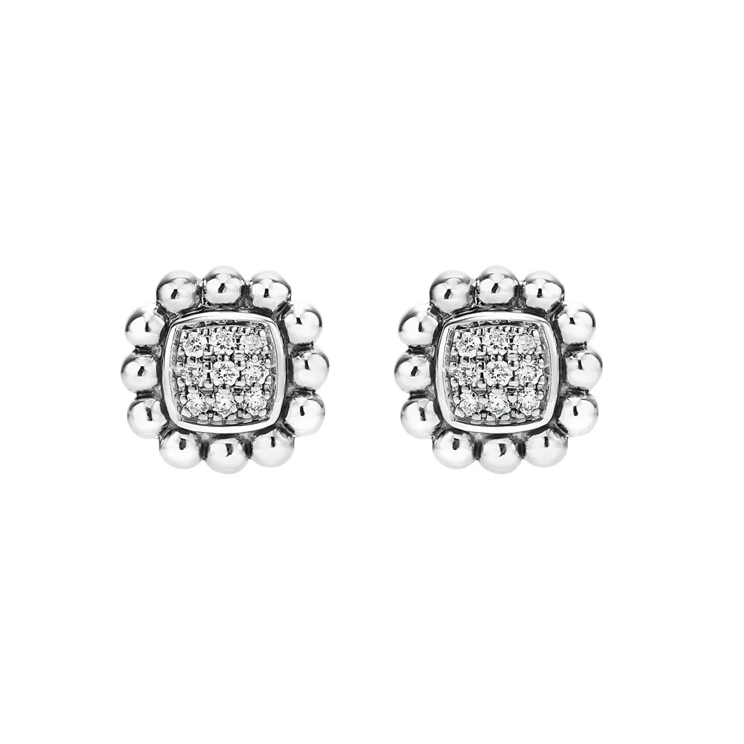 Pavé Diamond Square Stud Earrings Framed By Sterling Silver Caviar Beading. Lagos Diamonds Are The Highest Quality Natural Stones.