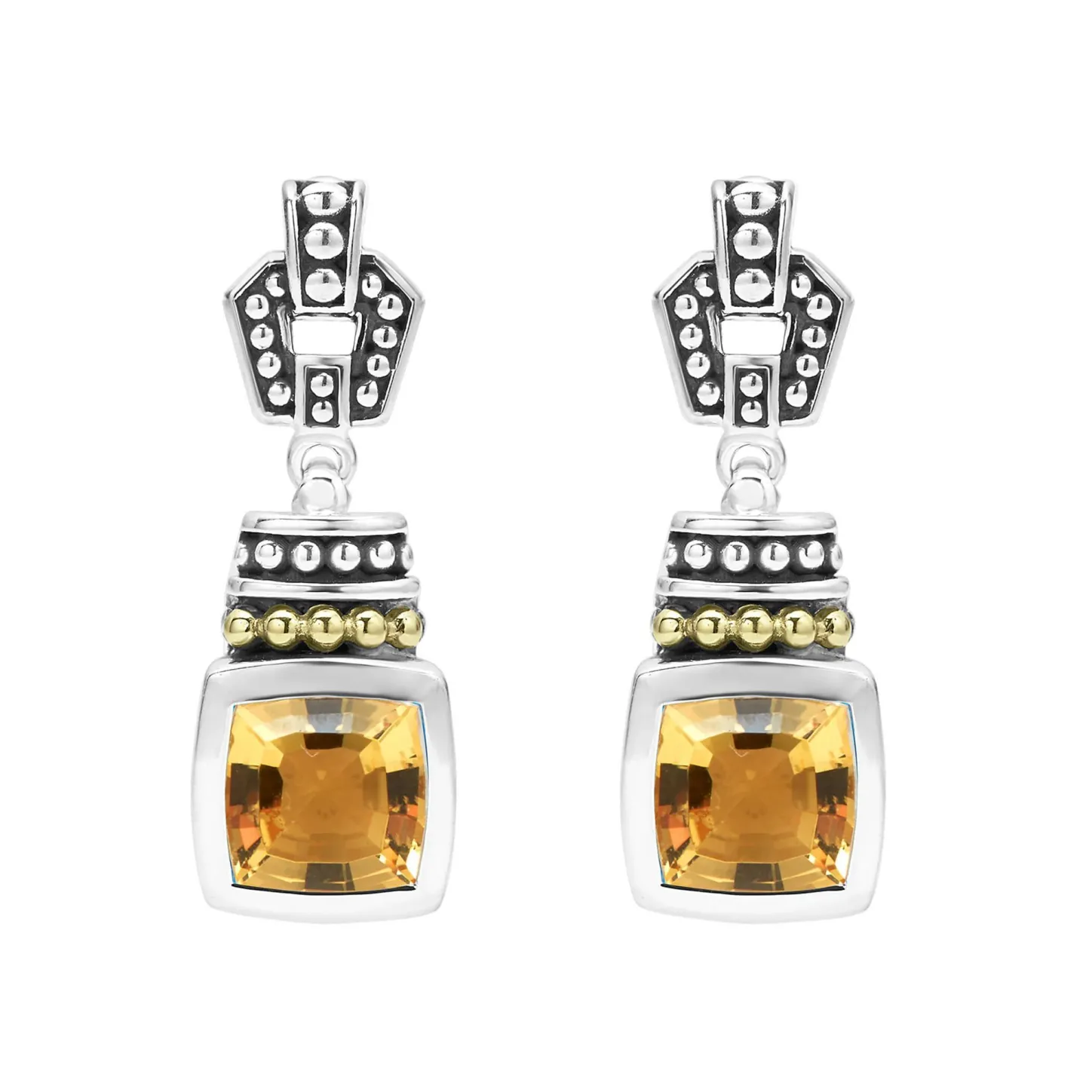 Citrine Bezel-Set Gemstone Drop Earrings With 18K Gold And Sterling Silver Caviar Accents.