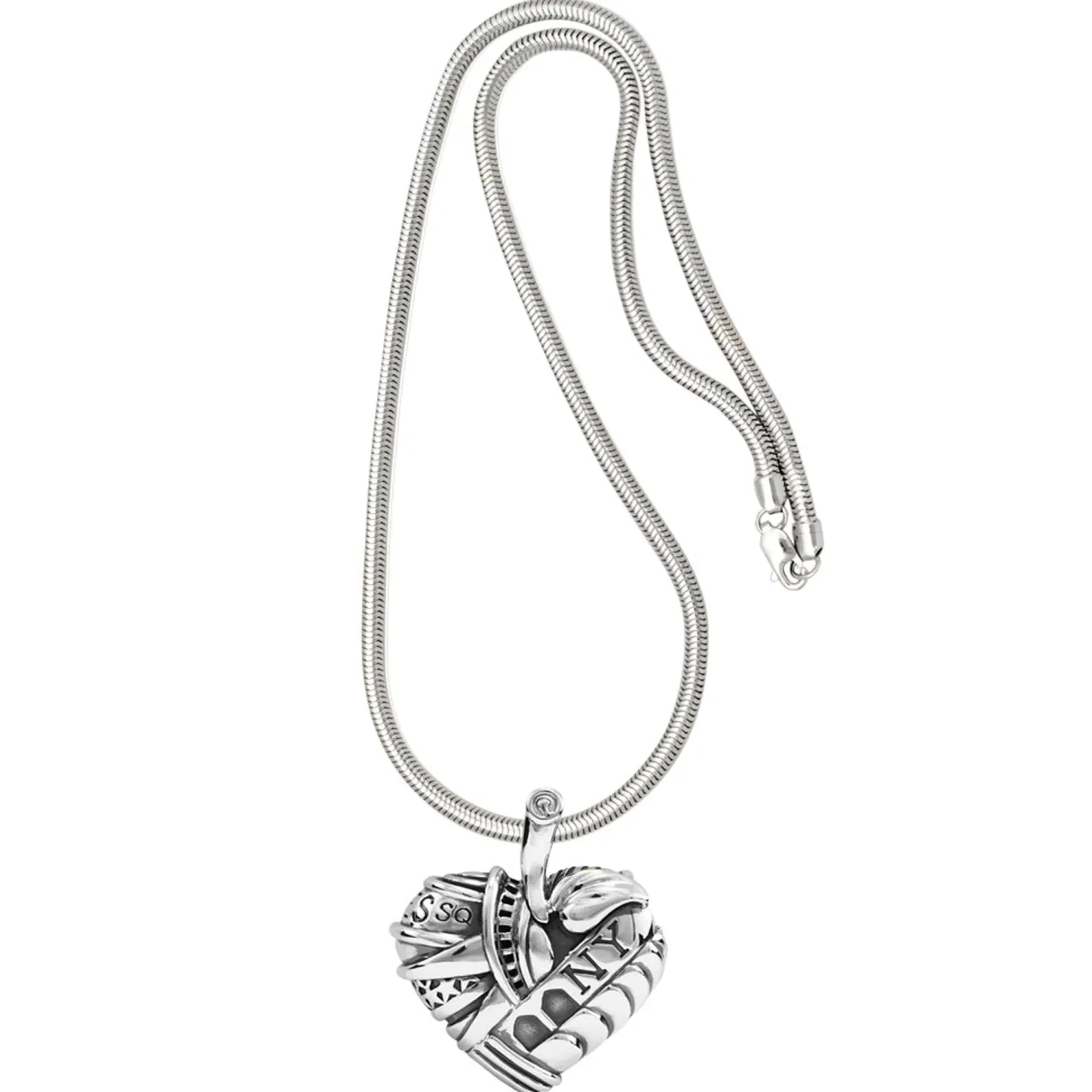 Celebrate The ‘Big Apple’ With The Empire State Building, The Chrysler Building And Times Square Detailed In Sterling Silver On This Large Pendant. Finished On A Snake Chain.
