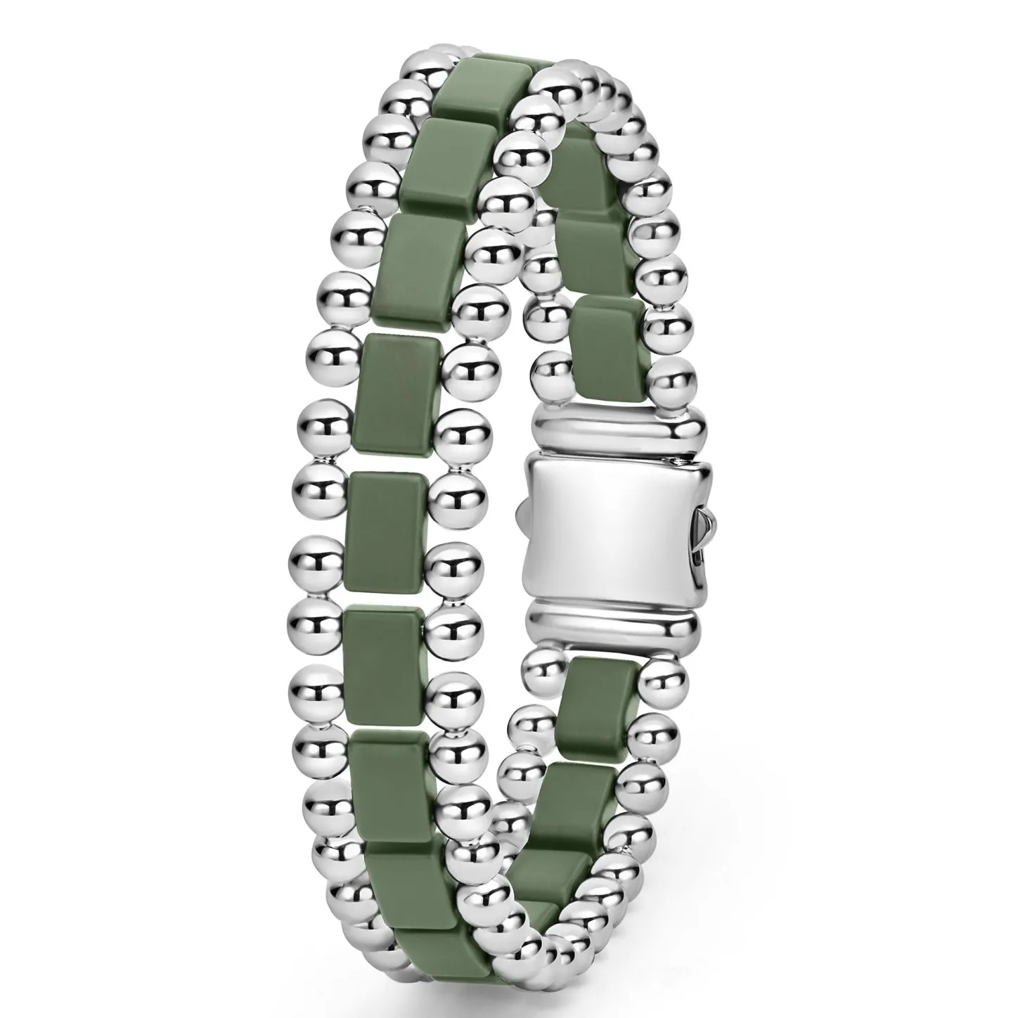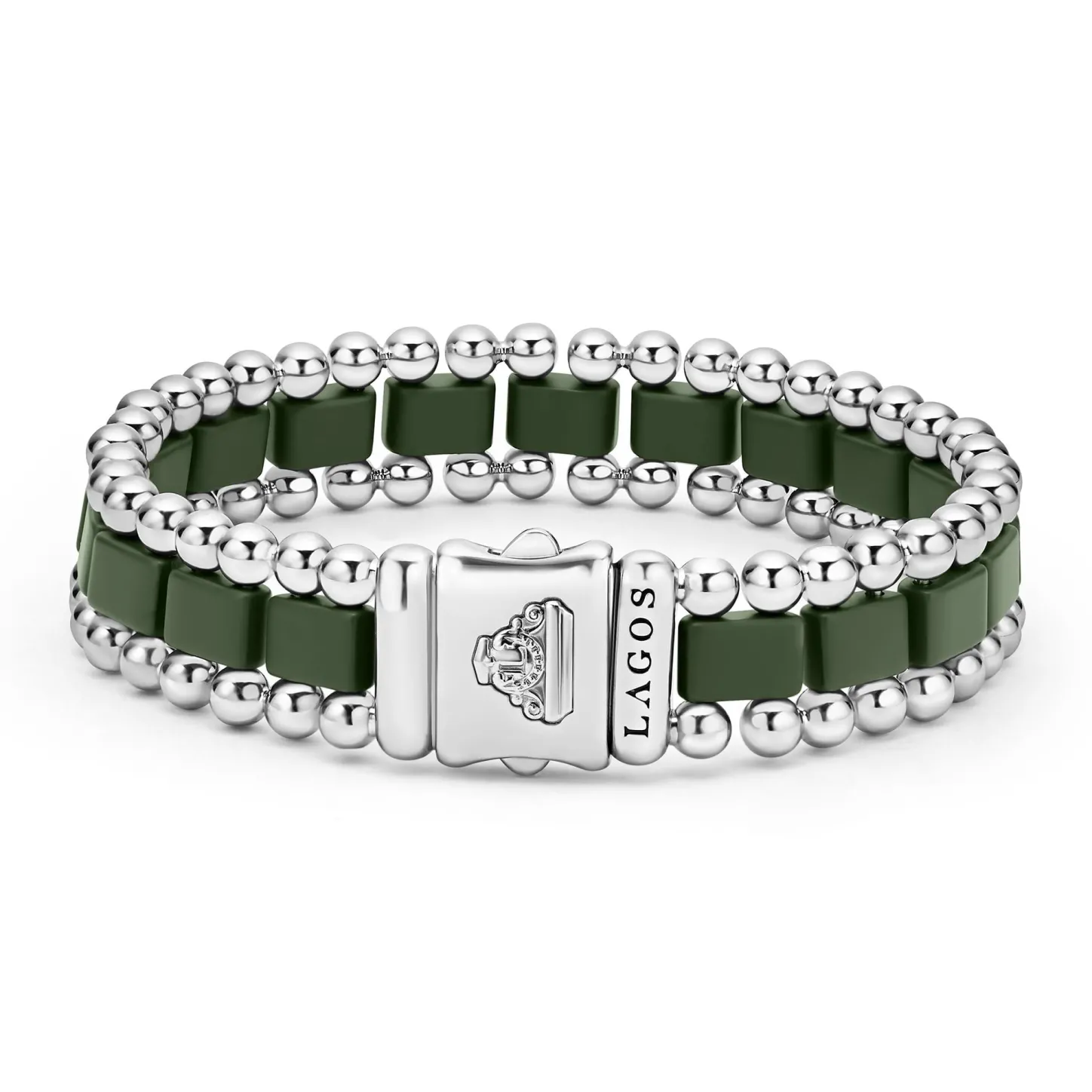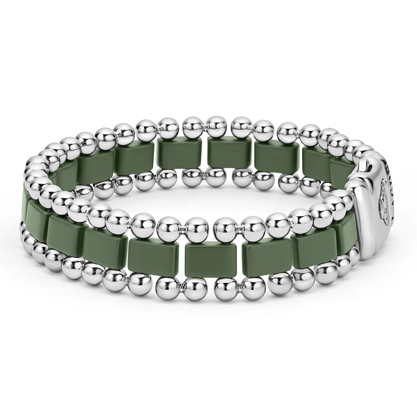 Matte Hunter Green Ceramic And Stainless Steel Form This Caviar Beaded Link Bracelet. Perfect For Everyday Wear.